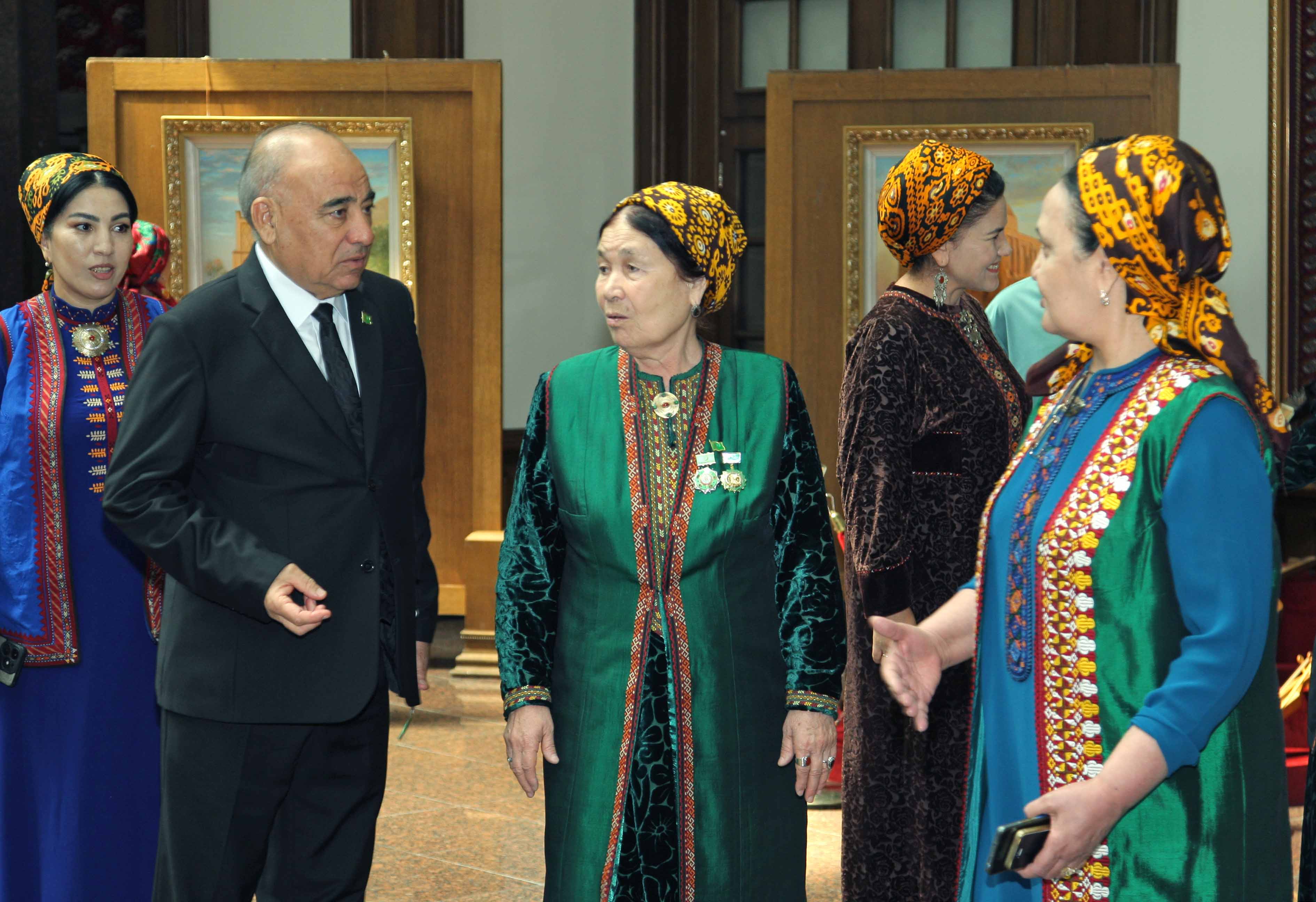 The exhibition was opened with the words of greeting and carried out by the head of advertising and publishing of the State museum of the State cultural centre of Turkmenistan Bossan Atаеvа. Then the floor was given to the 1 category librarian of the State library of the State cultural centre of Turkmenistan, the Honoured cultural worker of Turkmenistan Oguljemal Orazdurdyeva, the actress of Magtymguly national musical and drama theatre of Turkmenistan, the honoured art worker of Turkmenistan Gulshirin Annamyradova, the senior lecturer of Turkmen State school for culture and art Jumaberdi Artykov.
