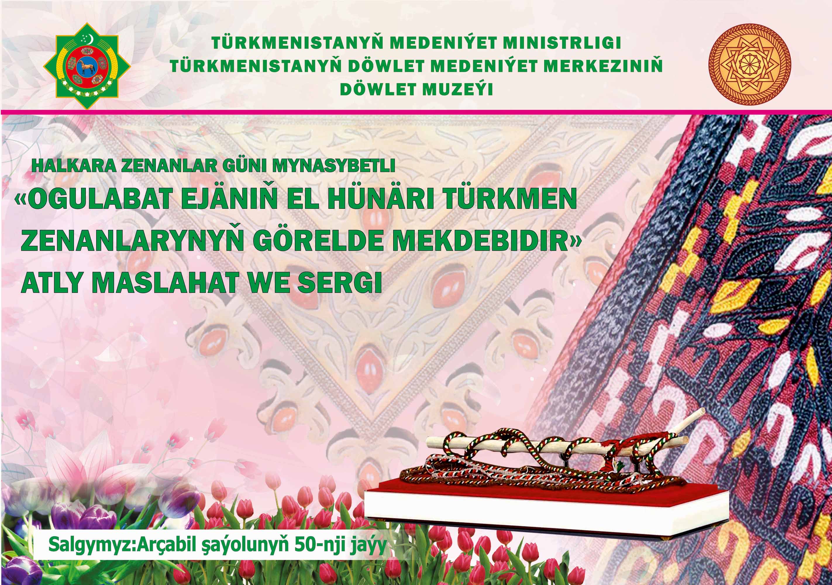 The State museum of the State cultural centre of Turkmenistan invites those, who wishes to the inauguration of the conference and exhibition named “The handicraft of Ogulabat eje is an exemplary school for Turkmen women” dedicated to the International Women’s day, which will be held on the 3th of March 2026 at 10:00 a.m. Our address: Archabil avenue – 50 Phone: 48-25-92