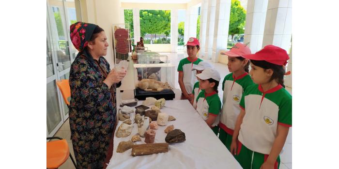 Hero Arkadag in his speeches points the important role of rich history of the people in upbringing of rising generation in the spirit of patriotism. Being guided by this the staff of the State museum of the State cultural centre of Turkmenistan  make the worthy contribution into the business of propagation and popularization of the national heritage. For this purpose in actions and celebrations, at schools and institutions of higher education are regularly carried out guest exhibitions of museum values specially for pupils and youth.