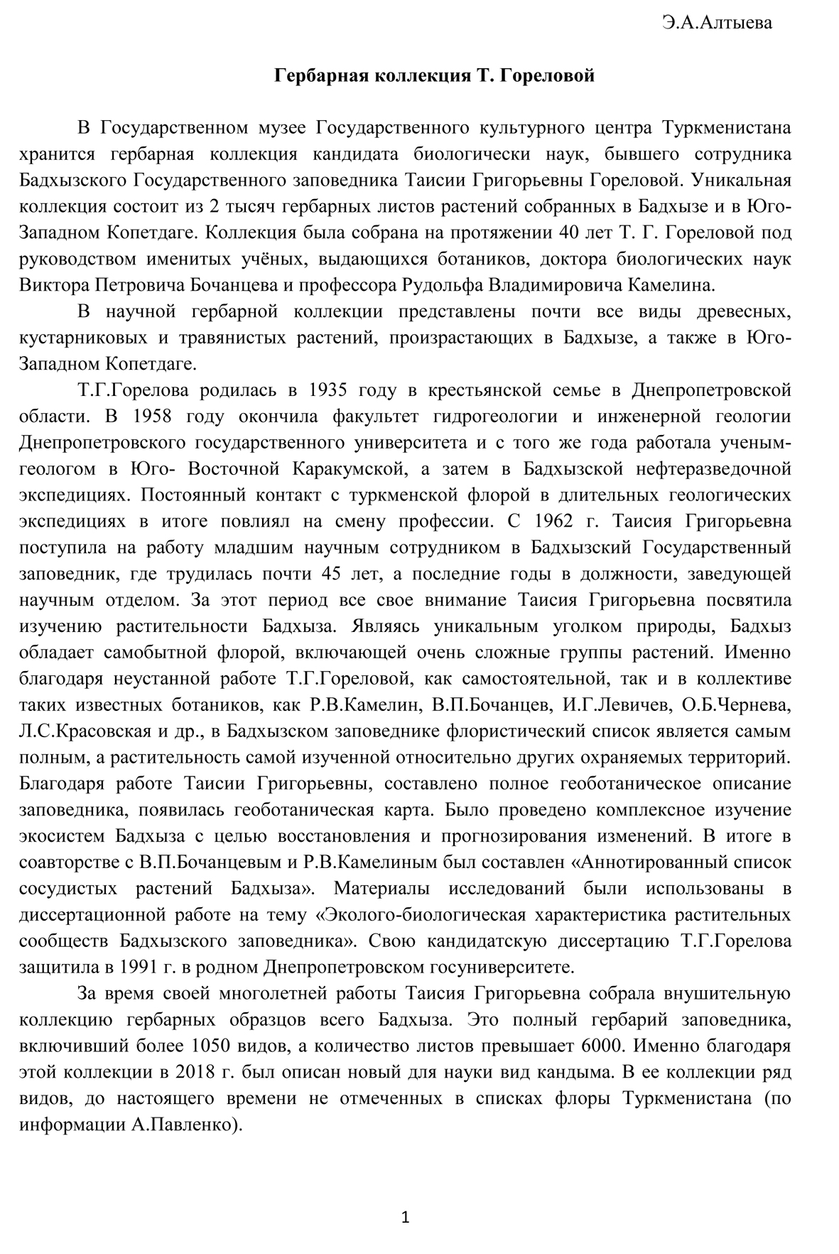 Гербарная коллекция Т. Гореловой