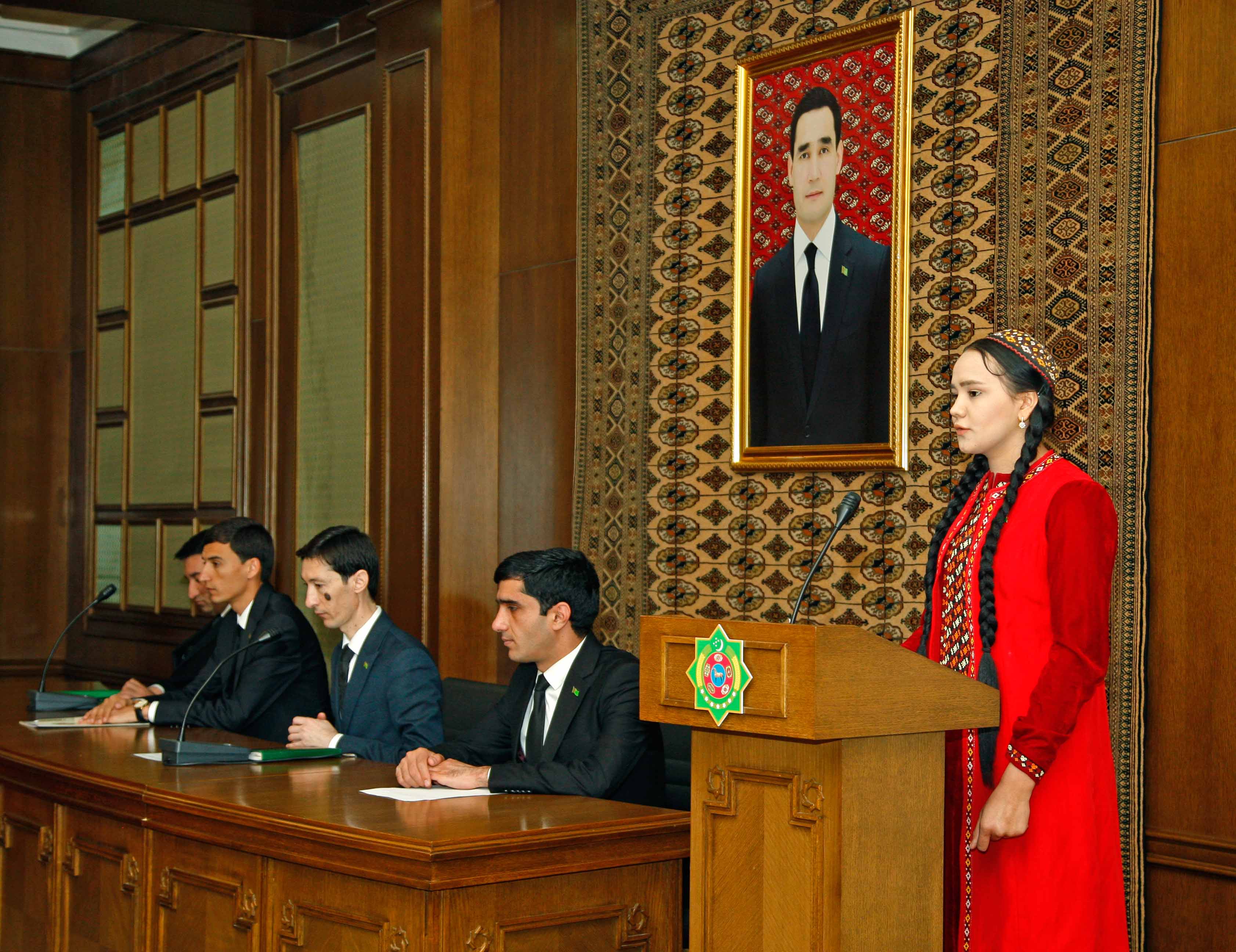 В Государственном музее Государственного культурного центра Туркменистана была проведена конференция под названием «Девиз года – духовный светоч поколений». В ней участвовали младший научный сотрудник института языка, литературы и национальной рукописи им. Махтымкули Академии наук Туркменистана Максат Мередов, преподаватель Государсвенного архитектурно-строительного института, председатель Совета молодых ученых института Бабаджан Бекмурзаев, преподаватель Туркменского сельскохозяйственного университета имени С.А.Ниязова, заместитель председателя Союза Молодежи университета Шахымухаммет Шахыев, заместитель начальника научно –методического отдела Государственного музея Государственного культурного центра Туркменистана Сульгун Бердиева, старший научный работник отдела культурно-просветительской работы Гулялек Мямиева, студентка 3-го курса специальности музейное дело и охрана памятников Туркменской Государственной школы культуры и искусства Серви Пыгамова. Участники конференции в своих выступлениях отметили о создании в нашей стране необходимых условий молодым ученым для ведения научной деятельности, об их научных трудах. Также подчеркнули о государственной поддержке, осуществляемой под руководством Уважаемого Президента, направленная на дальнейшее совершенствование научной подготовки молодых туркменских ученых,воспитания целеустремленной, высококвалифицированной, подготовленной молодежи с большим научным потенциалом, широким кругозором, способной управлять новыми технологиями.
