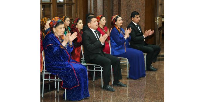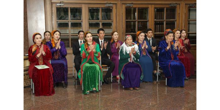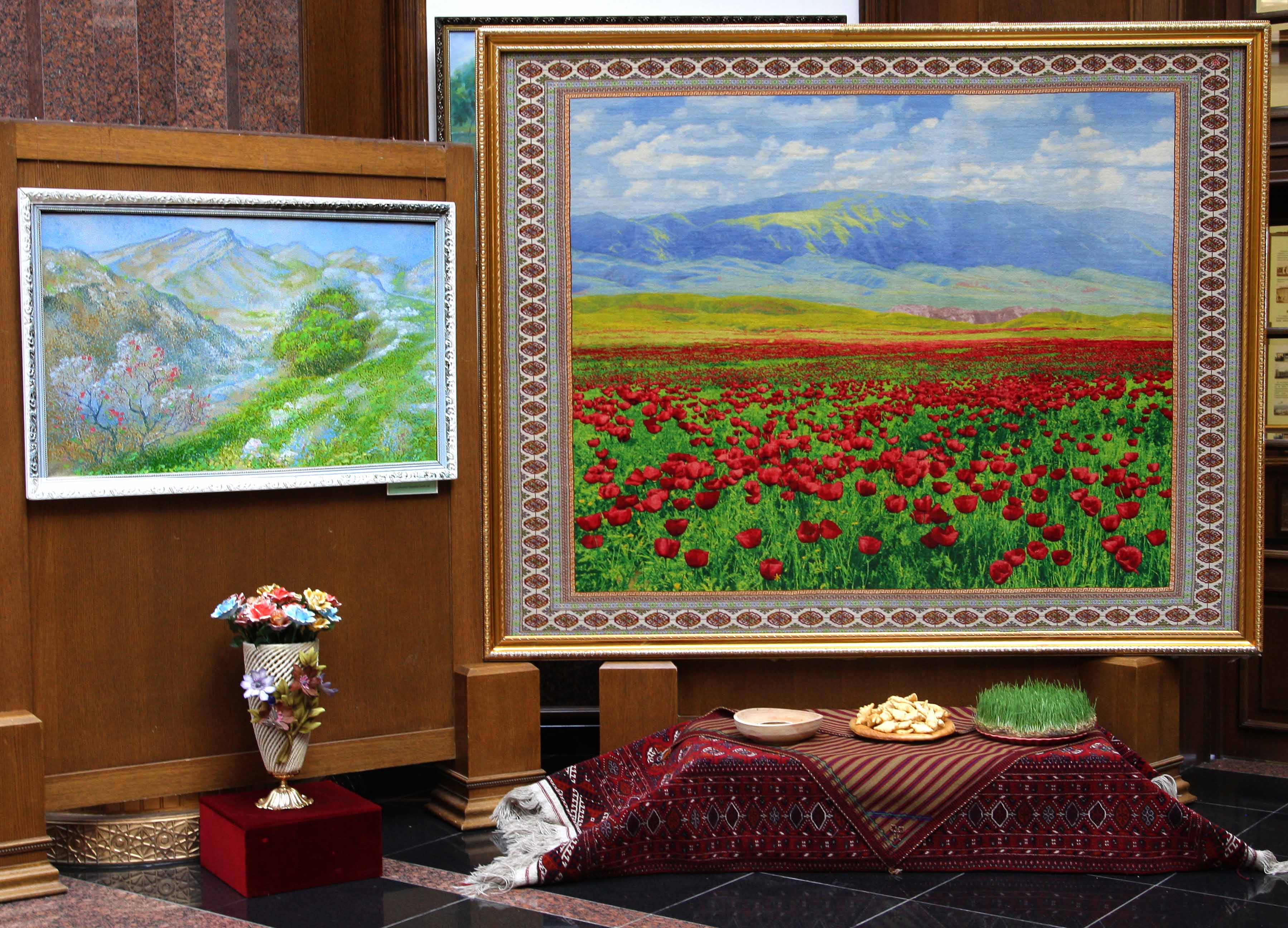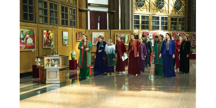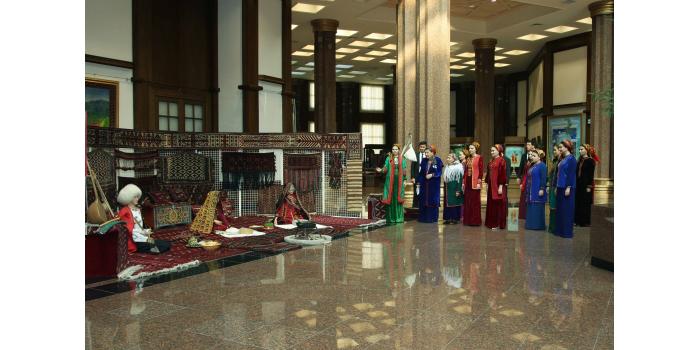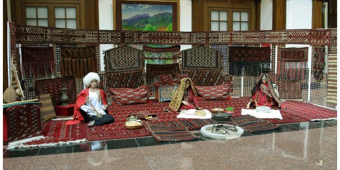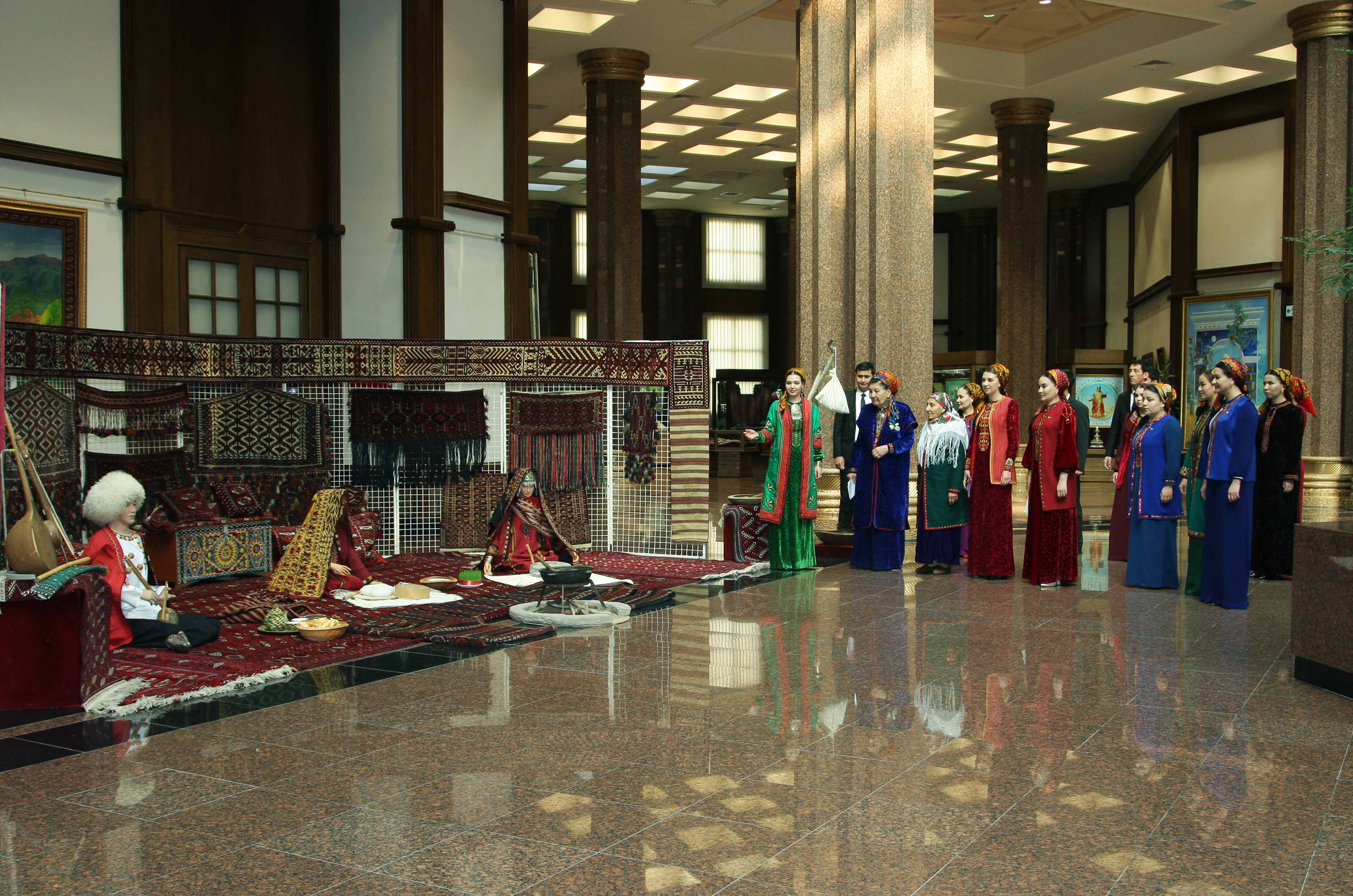 Праздник Новруз – это один из древнейших праздников возникших в ходе истории человечества. Новруз означает пробуждение природы, приход весны, ясную погоду. Новруз является не только праздником человеческой души, это также праздник всего живого, что существует в природе. Если обратиться к истории, то впервые Новруз праздновали в Месопотамии, а именно шумеры. Шумеры называли этот праздник “Aкитил”. На языке шумеров слово “тил” означает “заново родиться”, “жить”. Берущий свое начало в глубине веков этот праздник получил в 2010 году от ООН статус международного. Начиная с этого года, этот праздник отмечается на международном уровне как “Международный праздник Новруз”. В наших сердцах праздник Новруз также ассоциируется с единодушием, сплоченностью, гостеприимством, воодушевлением, мирной жизнью. У туркменского народа есть некоторые традиции, связанные с праздником Новруз. На этот праздник по традиции готовится национальное блюдо “семени”. Все угощение раздается родственникам или соседям. Bсе желают друг другу благополучия и удачи. B эру Возрождения новой эпохи могущественного государства в честь Международного праздника Новруз в Государственном музее Государственного культурного центра Туркменистана также организована праздничная выставка под названием “Новруз – праздник нового дня и обновления”. На выставке демонстрируются хранящиеся в запасниках Государственного музея ковры-панно, воспевающие весеннюю пору туркменской природы, произведения художников, а именно В.Майковского “Nowruz” и молодого художника Г.Язмухаммедовой “Цветы”. Кроме этого здесь показаны женские ювелирные украшения “ганатлы эгме”, “адамлык”, “шелпели гульяка”, ”гурсакча”, “хейкел”, четырехрядные браслеты и другие. В ходе выставки представлены сотканные туркменскими женщинами зеленые, желтые белые накидки, тюбетейки, вязаные носки и многое другое, которое создает гармонию. На видном месте расположена композиция, составляющая туркменскую юрту, где можно видеть женщин, просеивающих муку и готовящих основное блюдо праздника Новруз “семени”, ростки пшеницы и музыкантов бахши. Выставку словами приветствия открыл директор Государственного музея Государственного культурного центра Туркменистана Meрeтгeльды Чарыев. Затем слово имели заслуженный работник культуры Туркменистана Oгулджемал Чарыевa, библиотекарь Государственной библиотеки Государственного культурного центра Туркменистана, член Совета старейшин города Aшхабада Бибигозель Mаммeдoвa, учитель средней школы №14 этрапа Ак бугдай Aхалского велаята, лауреат Молодежной премии имени Махтумкули Хемра Дурдыев, заведующий отделом комитета Демократической партии Туркменистана этрапа Ак бугдай Узукджемал Язмурадова. Выступления гостей были очень интересными. Гости ознакомились с выставкой «Новруз – праздник нового дня и обновления» в Государственном музее Государственного культурного центра Туркменистана.