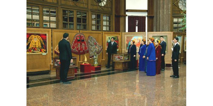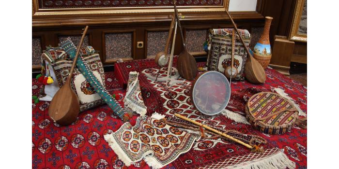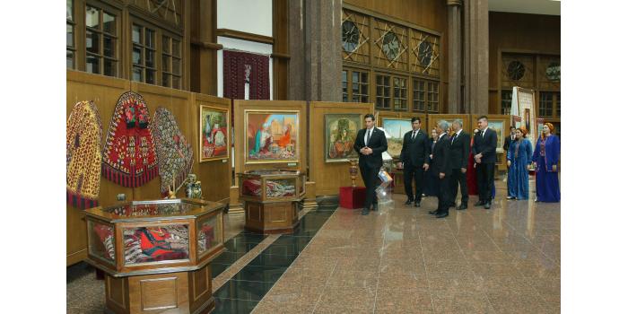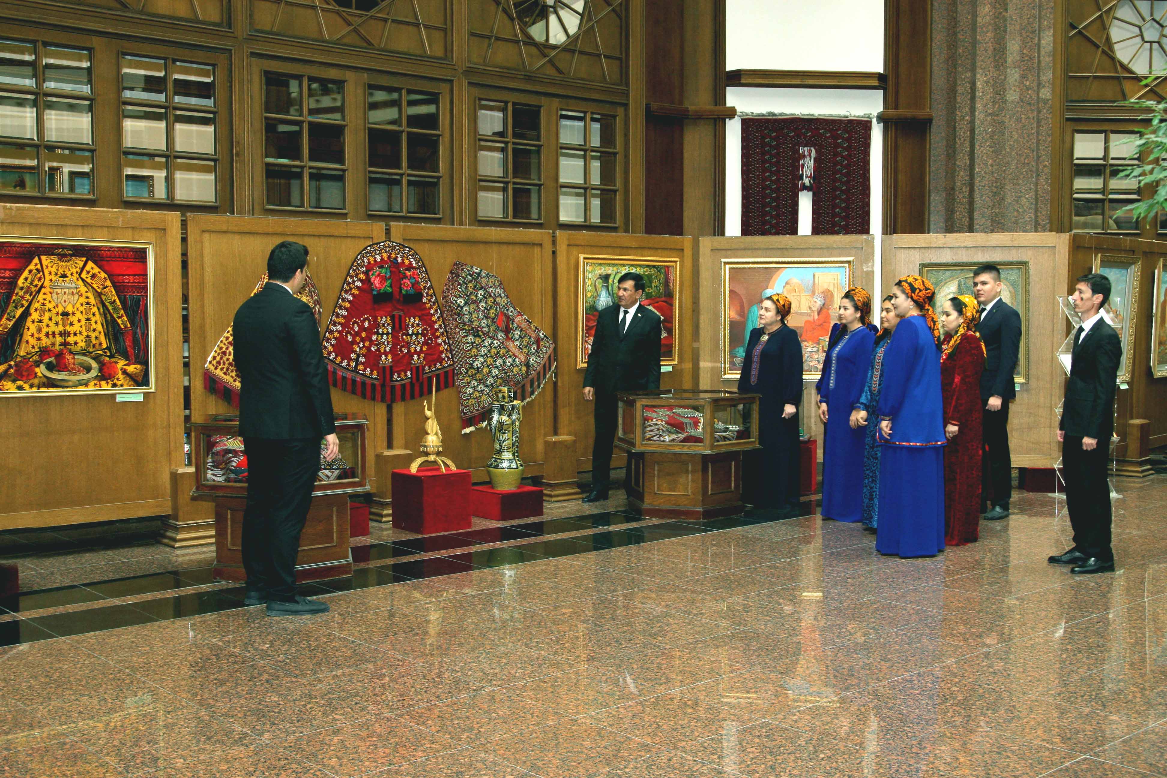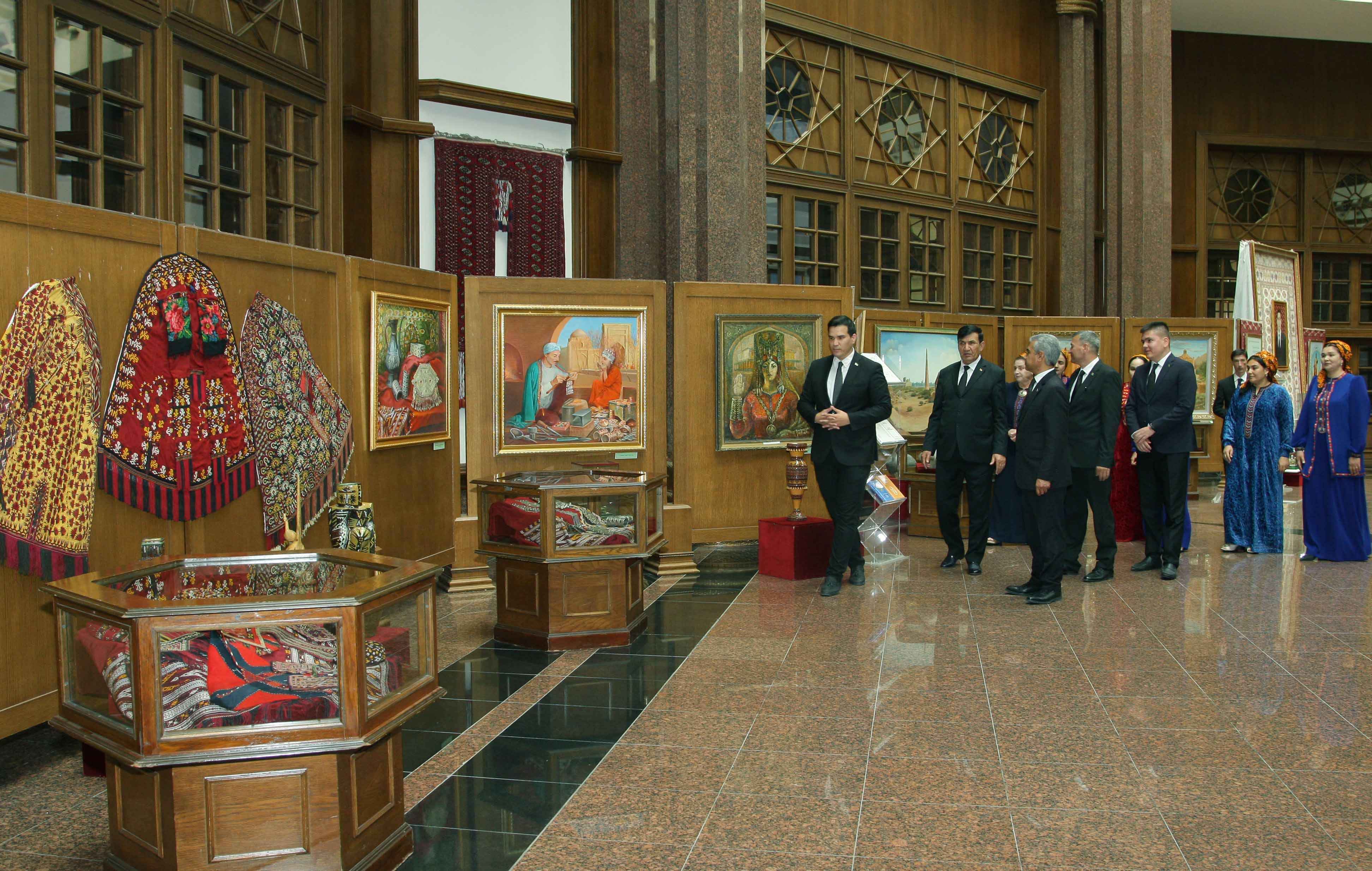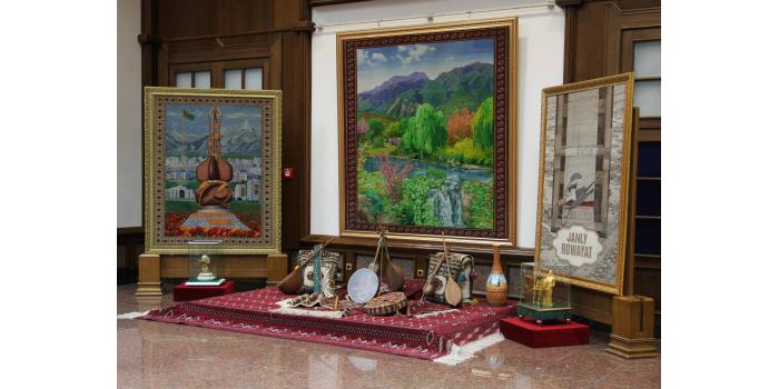 В том, что праздник работников культуры и искусства и день поэзии Махтумкули Фраги в год “Кладезь разума Махтумкули Фраги” отмечаются вместе имеет большое значение. В прекрасную эпоху, о которой мечтал поэт-мыслитель, культура и искусство туркменского народа знаменуются развитием, политике в области культуры сопутствует еще больший успех. Деятельность по празднованию в счастливой стране 300-летия со дня рождения Махтумкули Фраги, который внес в золотой фонд мировой литературы богатый и ценный вклад с международной общественностью, имеет важное значение. Установка гигантской скульптуры Махтумкули Фраги в эпоху новой истории у подножия Копетдага является знаком большого уважения нынешнего поколения к жизни и творческому наследию великого поэта. Творчество Махтумкули Фраги является гордостью нации, его глубокие как океан произведения – духовное богатство народа, бесценная сокровищница всего человечества. Поскольку творчество мыслителя призывает все человечество к единству, сплоченности, гуманизму. В произведениях мудрого Фраги красной нитью проходят литературное наследие туркменского народа, культура и искусство. В честь дня работников культуры и искусства, а также поэзии Махтумкули Фраги в Государственном музее Государственного культурного центра Туркменистана проведена выставка под названием “Культура – духовное богатство народа”. Выставка открывается мудрыми словами уважаемого Президента о культуре и искусстве и эмблемой года. Также на выставке представлены произведения художников Г.Tораева “Kуняургенч”, Г.Нурлыева “Aстaнa-бaбa”, “Султан Санджар”, “Мавзолей Ширкебир”, “Ювелир”, олицетворяющие исторические памятники Meрв, Хорезм, Дехистан, а также глиняная посуда, глазурованные кувшины, светильник. В ходе выставки расположены произведения Народного художника Туркменистана Ч. Aмангельдыева “Родогуна”, а также молодых художников Г.Язмухаммедовой “Национальные ценности”, Ш.Реджепова “Древнее ремесло”. Отдельное место на выставке уделено предметы женской одежды, красная, зеленая, желтая накидки, вышитые умелыми руками наших женщин и окрашенные в цвета весенней природы, тахья, пакет для приданого и другие. В хранилищах Государственного музея содержатся ювелирные изделия, созданные в начале XX века. Среди них представлены гульяка, aй халка, эгинлик, тумар, енселик, гоша aсык, четырехрядные браслеты и современные ювелирные композиции, украшающие выставку. Здесь также расположены дутар, гиджак, свирель, бубен, которые являются составной частью 72 музыкальных инструментов, украшающих праздники туркменского народа. Выставку словами приветствия открыл заведующий отделом Государственного музея Государственного культурного центра Туркменистана Дурдымурат Атдаев. Затем слово имели директор Государственного музея Государственного культурного центра Туркменистана Меретгельды Чарыев, ответственный секретарь газеты “Türkmen dünýäsi”, заслуженный журналист Туркменистана Доврангельды Aгалыев, научный сотрудник института Языка, литературы и национальных рукописей Академии Наук Туркменистана, исследователь творчества Махтумкули Юсуп Лаллаков, старший преподаватель Туркменского государственного училища культуры и искусства Джумамурат Aртыков. Артистка музыкально-драматического театра Туркменист
