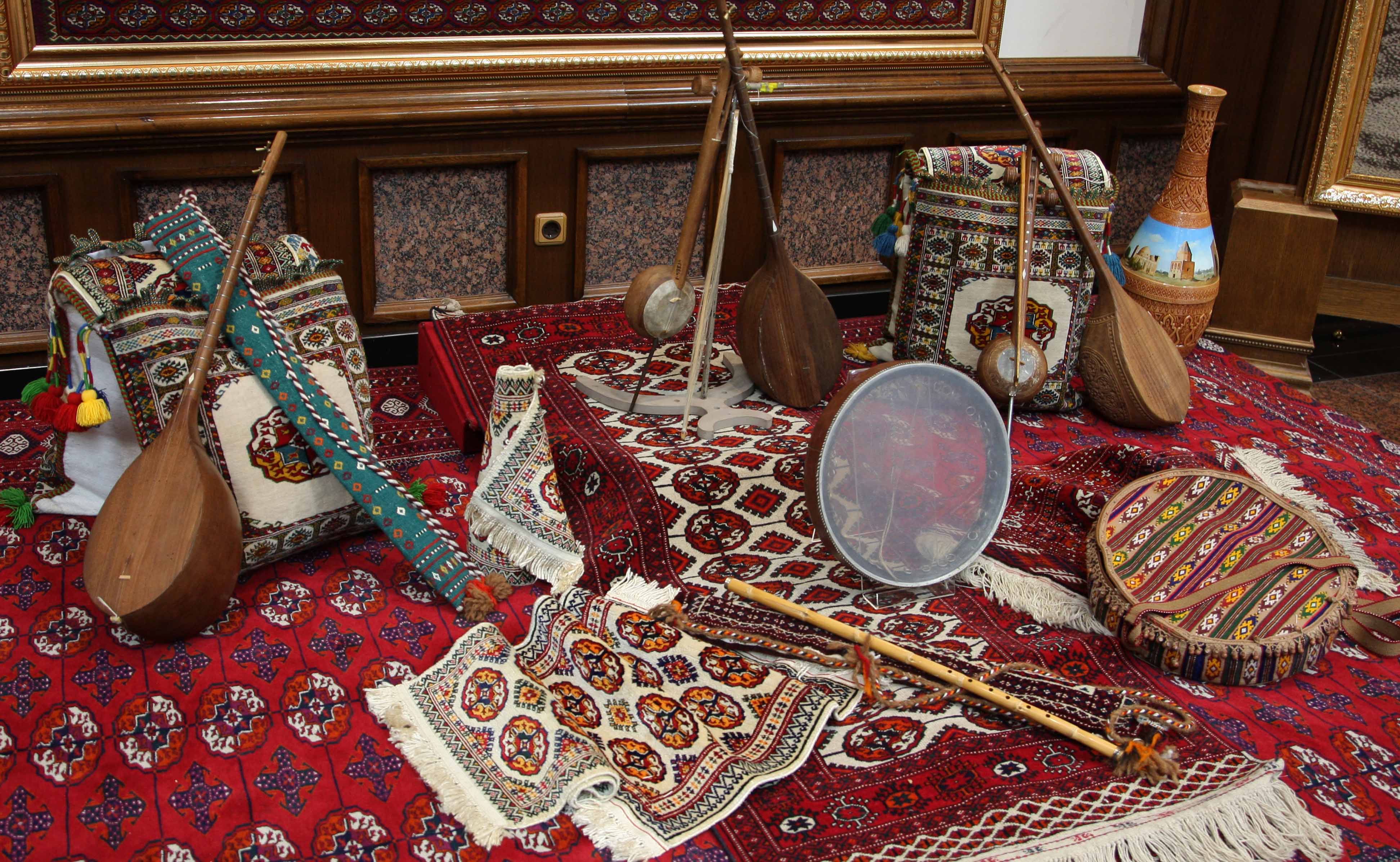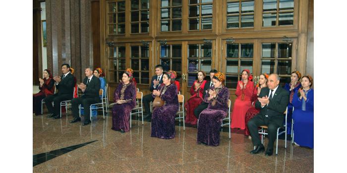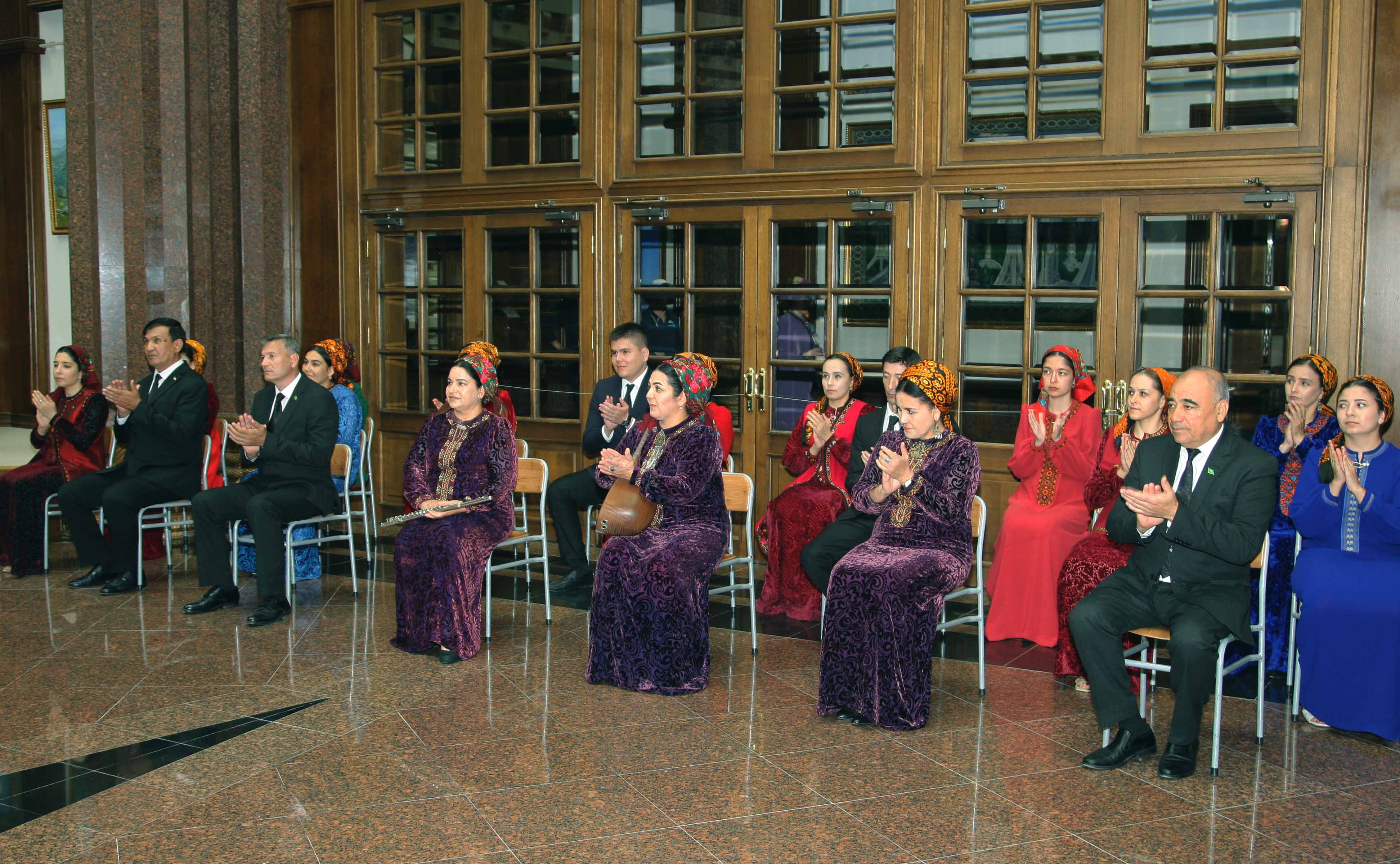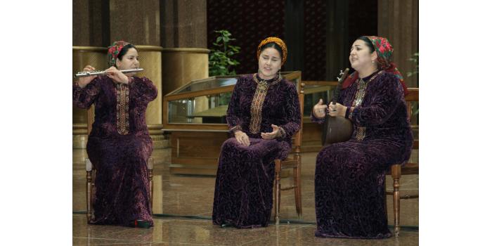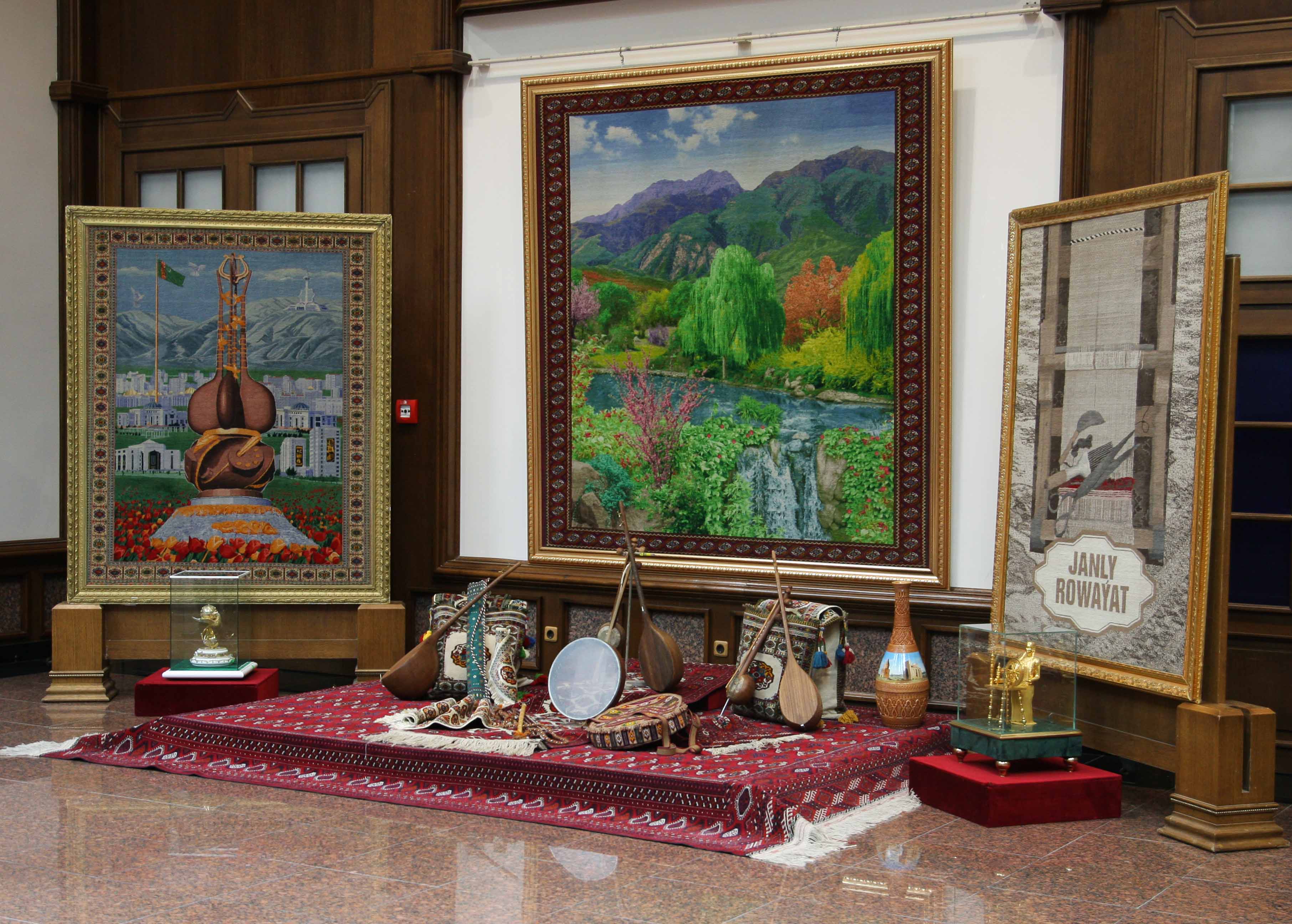 В том, что праздник работников культуры и искусства и день поэзии Махтумкули Фраги в год “Кладезь разума Махтумкули Фраги” отмечаются вместе имеет большое значение. В прекрасную эпоху, о которой мечтал поэт-мыслитель, культура и искусство туркменского народа знаменуются развитием, политике в области культуры сопутствует еще больший успех. Деятельность по празднованию в счастливой стране 300-летия со дня рождения Махтумкули Фраги, который внес в золотой фонд мировой литературы богатый и ценный вклад с международной общественностью, имеет важное значение. Установка гигантской скульптуры Махтумкули Фраги в эпоху новой истории у подножия Копетдага является знаком большого уважения нынешнего поколения к жизни и творческому наследию великого поэта. Творчество Махтумкули Фраги является гордостью нации, его глубокие как океан произведения – духовное богатство народа, бесценная сокровищница всего человечества. Поскольку творчество мыслителя призывает все человечество к единству, сплоченности, гуманизму. В произведениях мудрого Фраги красной нитью проходят литературное наследие туркменского народа, культура и искусство. В честь дня работников культуры и искусства, а также поэзии Махтумкули Фраги в Государственном музее Государственного культурного центра Туркменистана проведена выставка под названием “Культура – духовное богатство народа”. Выставка открывается мудрыми словами уважаемого Президента о культуре и искусстве и эмблемой года. Также на выставке представлены произведения художников Г.Tораева “Kуняургенч”, Г.Нурлыева “Aстaнa-бaбa”, “Султан Санджар”, “Мавзолей Ширкебир”, “Ювелир”, олицетворяющие исторические памятники Meрв, Хорезм, Дехистан, а также глиняная посуда, глазурованные кувшины, светильник. В ходе выставки расположены произведения Народного художника Туркменистана Ч. Aмангельдыева “Родогуна”, а также молодых художников Г.Язмухаммедовой “Национальные ценности”, Ш.Реджепова “Древнее ремесло”. Отдельное место на выставке уделено предметы женской одежды, красная, зеленая, желтая накидки, вышитые умелыми руками наших женщин и окрашенные в цвета весенней природы, тахья, пакет для приданого и другие. В хранилищах Государственного музея содержатся ювелирные изделия, созданные в начале XX века. Среди них представлены гульяка, aй халка, эгинлик, тумар, енселик, гоша aсык, четырехрядные браслеты и современные ювелирные композиции, украшающие выставку. Здесь также расположены дутар, гиджак, свирель, бубен, которые являются составной частью 72 музыкальных инструментов, украшающих праздники туркменского народа. Выставку словами приветствия открыл заведующий отделом Государственного музея Государственного культурного центра Туркменистана Дурдымурат Атдаев. Затем слово имели директор Государственного музея Государственного культурного центра Туркменистана Меретгельды Чарыев, ответственный секретарь газеты “Türkmen dünýäsi”, заслуженный журналист Туркменистана Доврангельды Aгалыев, научный сотрудник института Языка, литературы и национальных рукописей Академии Наук Туркменистана, исследователь творчества Махтумкули Юсуп Лаллаков, старший преподаватель Туркменского государственного училища культуры и искусства Джумамурат Aртыков. Артистка музыкально-драматического театра Туркменист