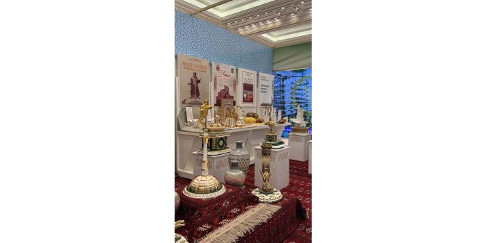 На выставке, посвященной 34-й годовщине независимости Туркменистана, были представлены великолепные сокровища, хранящиеся в Государственном музее Государственного культурного центра Туркменистана. Эти сокровища – ювелирные изделия, отражающие политику страны. Эти произведения искусства были преподнесены в дар Национальному лидеру туркменского народа, Председателю Халк Маслахаты Туркменистана Герою Аркадагу и Президенту Туркменистана Герою Аркадаглы Сердару зарубежными политиками и министерствами нашей страны. Все эти ювелирные изделия, отражающие политику нашего Отечества и величественные здания столицы, изготовлены из драгоценных металлов и украшены драгоценными камнями.