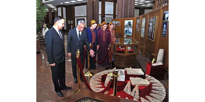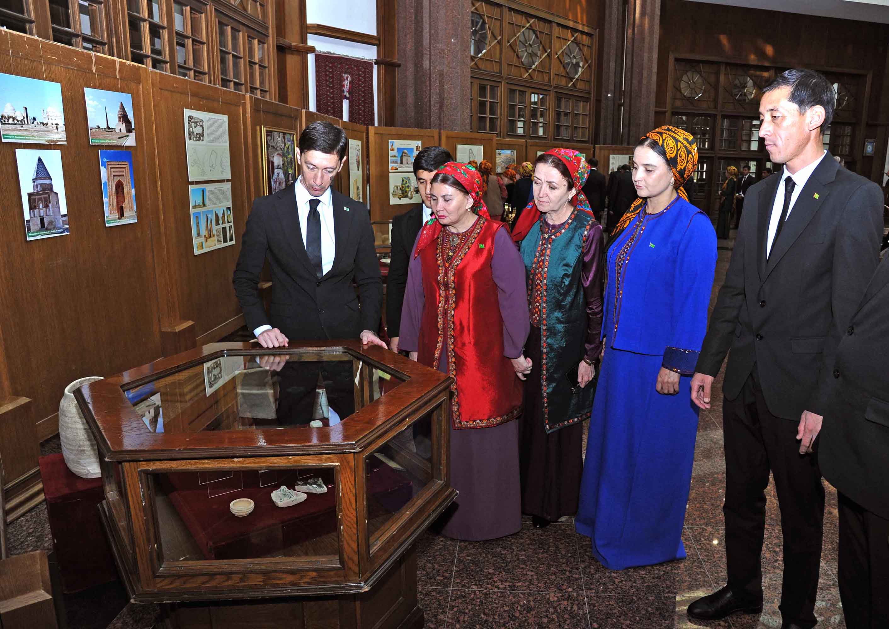 Türkmen alymlary tarapyndan gazuw-agtaryş işleri geçirilende ýüze çykarylan taryhy gymmatlyklar bilen Türkmenistanyň Döwlet muzeýiniň ozalky täsin tapyndylarynyň üsti ýetirildi. Türkmenistanyň Taryhy we medeni ýadygärlikleri goramak, öwrenmek hem-de rejelemek baradaky milli müdirligi hem-de onuň garamagyndaky "Nusaý”, “Abiwerd” we “Köne Sarahs” taryhy-medeni döwlet goraghanalary tarapyndan dürli görnüşli taryhy gymmatlyklar Türkmenistanyň Döwlet medeniýet merkeziniň Döwlet muzeýine tabşyryldy. Dabaraly çäräniň çäklerinde Türkmenistanyň taryhyna bagyşlanan sergi hem gurnaldy. Sergide Türkmenistanyň çäginde ýerleşýän ýadygärlikleriň fotosuratlary, binanyň bezeg bölekleri görkezilip, olar täsinligi, daşky görnüşi, ölçegleriniň takyklygy, çyzma nagyşlarynyň çeperçiligi, ýüzüne berlen şekiller bilen haýran galdyrýar. Toýundan ýasalan küýzedir gap-gaçlaryň daşyna reňkli nagyş çekilen bolsa, syrçaly gabyň böleklerinde guşuň, gülüň şekilleri bar. Öküziň, horazyň, itiň şekilleri berlen heýkeljikler ýasalyşynyň naşylygy bilen tapawutlanýar. Gyzyň şekili çekilen gabyň bölegi sungatyň ajaýyp eserini ýadyňa salýar. Toýundan ýasalan kärizde ulanylýan güle hem täsin tapyndylaryň biridir.