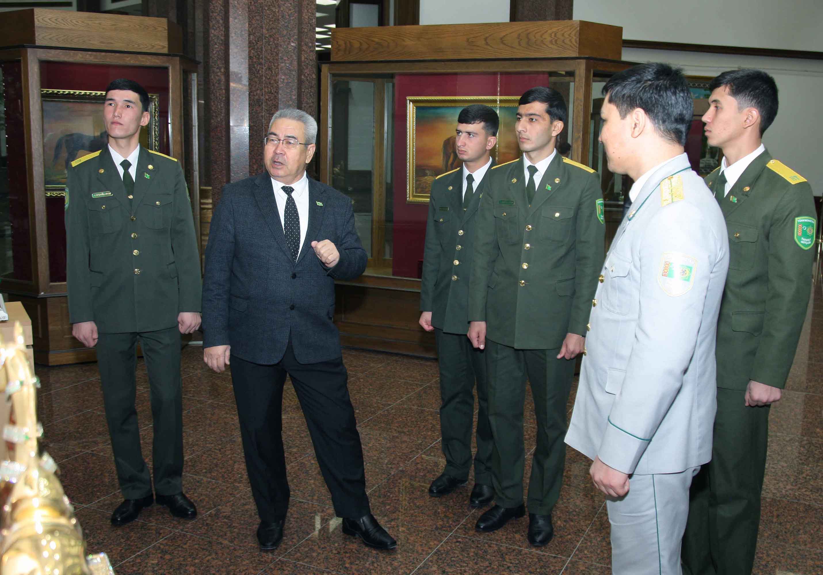 Türkmenistanyň Döwlet medeniýet merkeziniň Döwlet muzeýinde Watan goragçylarynyň güni mynasybetli «Watan mertebesi beýikdir, goragy mukaddes borçdur» atly sergi guraldy. Sergini Türkmenistanyň Döwlet muzeýiniň uly ylmy işgäri Döwletmyrat Rejepow açdy hem-de Watan goragçylarynyň güni bilen gutlap, türkmen esgeriniň parahat, asuda, abadan Watanymyzy goramakdaky mynasyp orny barada gyzykly gürrüňler bilen çykyş etdi. Soňra «Milli goşun» žurnalynyň bölüm redaktory Aşyrmät Garlyýew, Türkmenistanyň Goranmak ministrliginiň Beýik Saparmyrat Türkmenbaşy adyndaky Harby institutynyň mugallymy, kapitan Myrat Sapargulyýew, Türkmenistanyň Goranmak ministrliginiň Berdimuhamet Annaýew adyndaky 1-nji Ýöriteleşdirilen harby mekdebiniň uly leýtenanty Atamyrat Aşyrgeldiýew Milli goşunymyzyň goranmak ukybynyň, söweşjeň kuwwatynyň we ýeten belent derejesiniň tutýan orny barada çykyş etdiler. Olar harby kasama, harby borja wepalylygyň jogapkärçiligi hem-de uly at-abraýa, belent mertebä mynasyp bolmagyň hormatynyň uludygyny bellediler. Soňra Türkmenistanyň Goranmak ministrliginiň Beýik Saparmyrat Türkmenbaşy adyndaky Harby institutynyň 4-nji ýyl harby talyby Daýanç Ataýew, Türkmenistanyň Serhet institutynyň 4-nji ýyl harby talyby Parahat Ataýew çykyş etdi. Olar hormatly Prezidentimiziň häzirki we geljekki nesilleriň eşretli durmuşyny üpjün etmegiň hatyrasyna durmuşa geçirýän parasatly syýasatynyň, ýaşlar baradaky aladasynyň mynasyp beýanyny tapýandygyny aýdyp, döredilýän mümkinçilikler üçin Gahryman Arkadagymyza, Arkadagly Gahryman Serdarymyza minnetdarlygyny bildirdiler. Sergide edilen çykyşlar halkymyzyň parahatçylyk söýüjiliginiň, ynsanperwerliginiň, dost-doganlyga sarpa goýýan belent maksatlaryna ygrarlydygyny şöhlelendirdi.