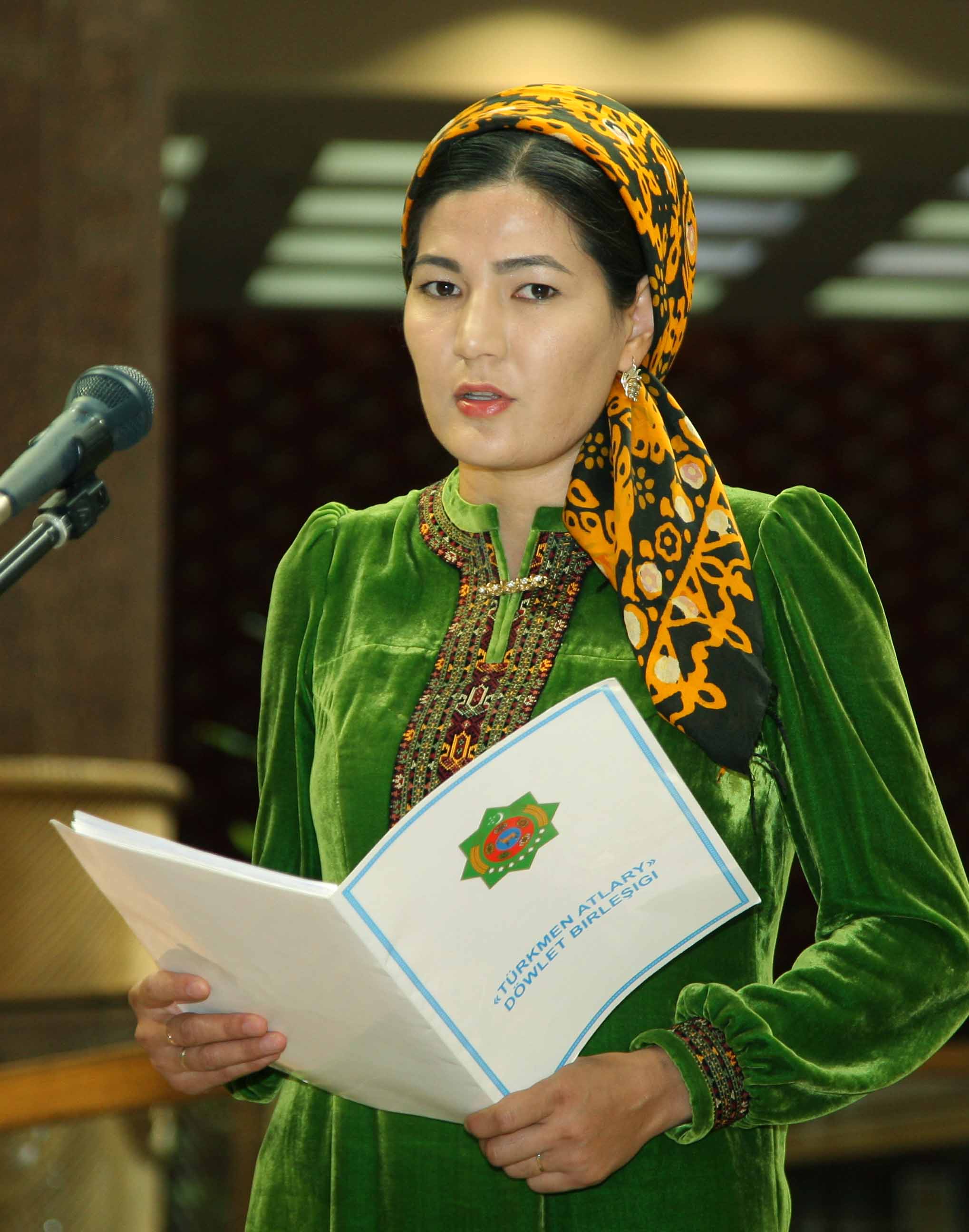 At the State museum of the State cultural centre of Turkmenistan was carried out an exhibition named «Akhalteke horse – standard of speed and beauty» in honour of the National holiday of Turkmen horse. At the era of Revival of a new epoch of the powerful state ancient traditions of the Turkmen people become an inseparable part of a state policy. In spite of the fact that there has passed so much time, the Turkmen people have managed to keep their culture, material and cultural values. If to follow up an origin of spiritual pride of Turkmens, the horses of paradise, who are considered to be their friend, it is possible to see, that behind it there is a boundless as the sky and deep as ocean history, that Turkmen horses take the big place that our courageous people have achieved glory and honour. Akhalteke horses, which are known all over the world by their playfulness and endurance, have highly lifted authority of the Turkmen people and have won prize-winning places in beauty contests. Now their glory is carried even more strongly. Celebration of national Day of a Turkmen racer on last Sunday of April is a sign of respect to Akhalteke horse At the State museum of the State cultural centre of Turkmenistan is organized an exhibition named «Akhalteke horse – standard of speed and beauty» in honour of the National holiday of Turkmen horse. At the exhibition are presented the works by artists I.Ishangulyev, P.Gapanchaeva devoted to a theme of horses. Here is also presented the ancient harness of Akhalteke horse, faultlessly decorated horse draws special attention. Carpet products, felt mats, harness, and ancient adornments enrich the exhibition. In the course of the exhibition the image of a horse is presented in carpets, pictures and figurines. The exhibition was opened by the deputy head of division of the State museum of the State cultural centre of Turkmenistan Bahartach Rustemova. Then the floor was given to the member of the International association of Akhalteke horses, Honoured horse breeder Tуркменистана, private horse breeder Bashimdurdy Shadurdyyev, head of division of advanced training of workers of science and education of the National institute of education Sapar Durdyyev, organizer and editor of broadcast of “Miras” radio station Koshuli Annaseyidov, specialist of the International sports complex of Akhalteke horses Ogulnur Gurdova, a lecturer in horse breeding of the department of winter and Olympic sports of Turkmen institute of physical training and sports Myrat Duydanov, jockey, coach of sports school №5 of Ashgabat city Main administration on physical training and sports Baba Babayev. The interesting speeches were greeted with prolonged applause. Then the guests acquainted with the exhibition «Akhalteke horse – standard of speed and beauty».