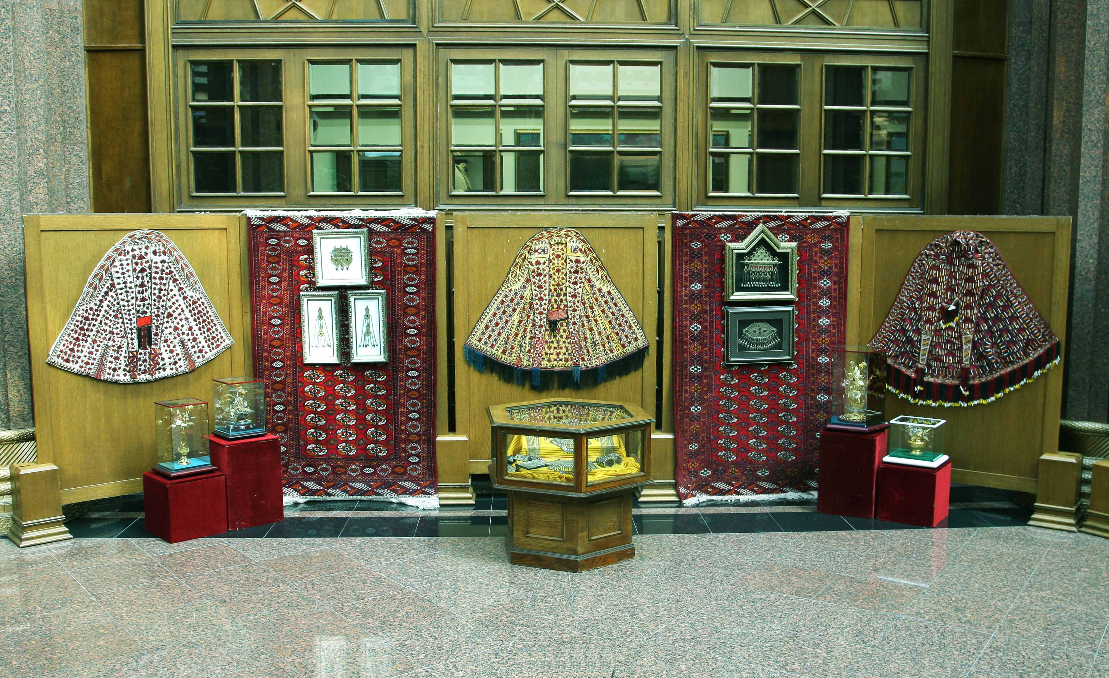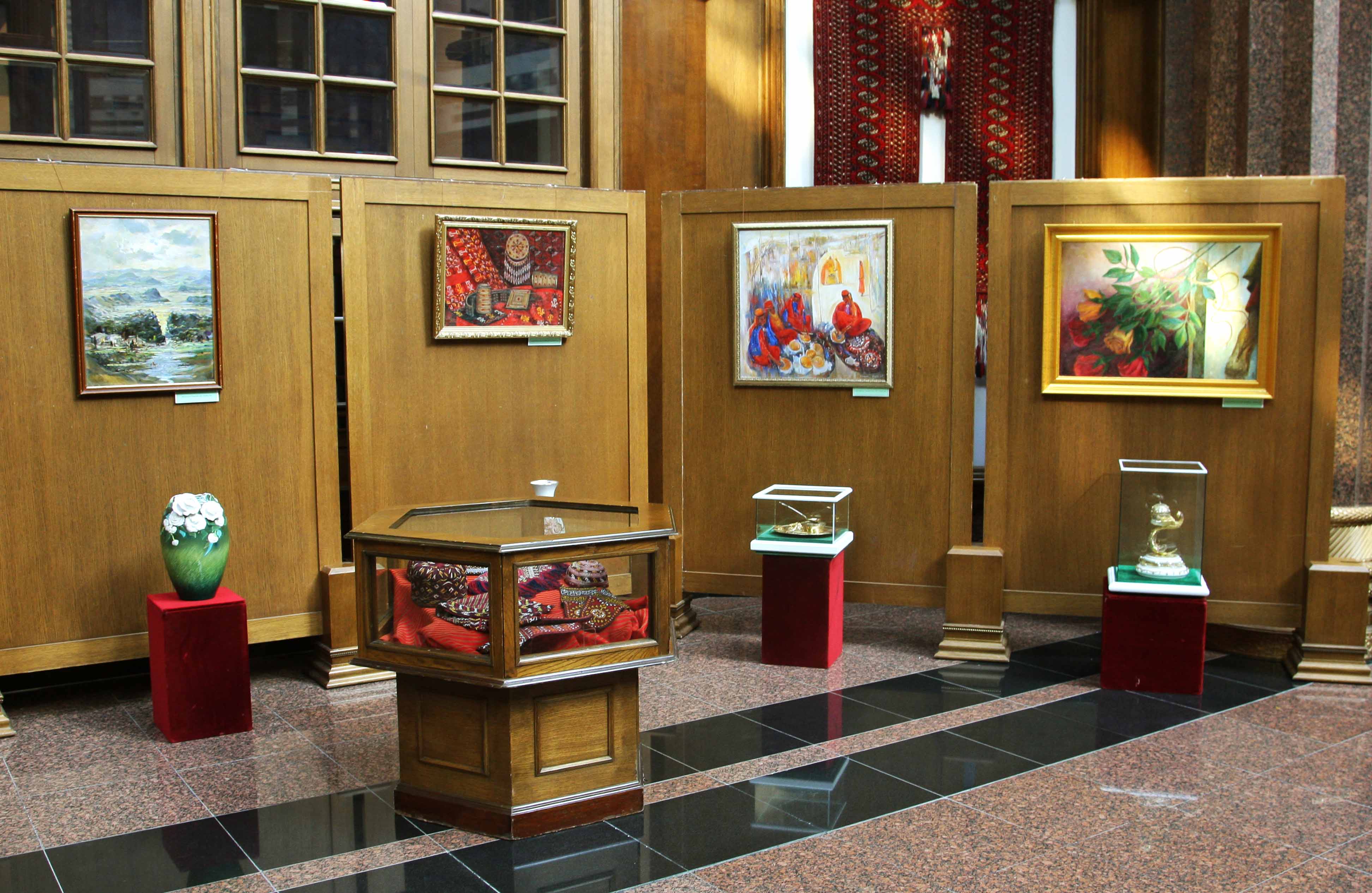 In the era of Revival of a new epoch of the powerful state in honour of International Novruz holiday at the State museum of the State cultural centre of Turkmenistan is also organised the festive exhibition named “Novruz – holiday of a new day and renovation”. At the exhibition are shown kept in storehouses of the State museum picture carpets glorifying a springtime of the Turkmen nature, works of artists, namely V.Maykovski “Novruz” and the young artist G.Yazmukhammedova "Flowers". Besides it, here are presented woman’s jewellery “ganatly egme”, “edamlyk”, “shelpeli gulyaka”, ”gursakcha”, “heykel”, four segment bracelets and others. In the course of the exhibition are presented sewed by Turkmen women green, yellow and white capes, embroidered skullcaps, knitted socks and many other things, which create harmony. The composition showing Turkmen yurta where is possible to see the women sifting a flour and preparing the main dish of Novruz holiday " semeni ", wheat shoots and bagshy is located in a sufficient place.