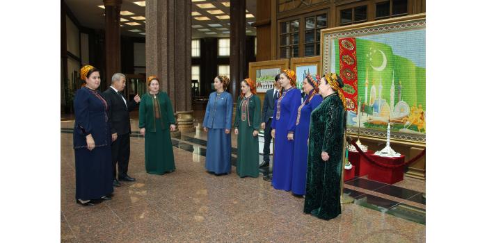 At the festive exhibition were presented books by the Hero Arkadag, pictures of well-known artists, splendid jewellery compositions that glorify era of Revival of a new epoch of the powerful state, artworks, carpets, woven by our skilful carpet-makers.