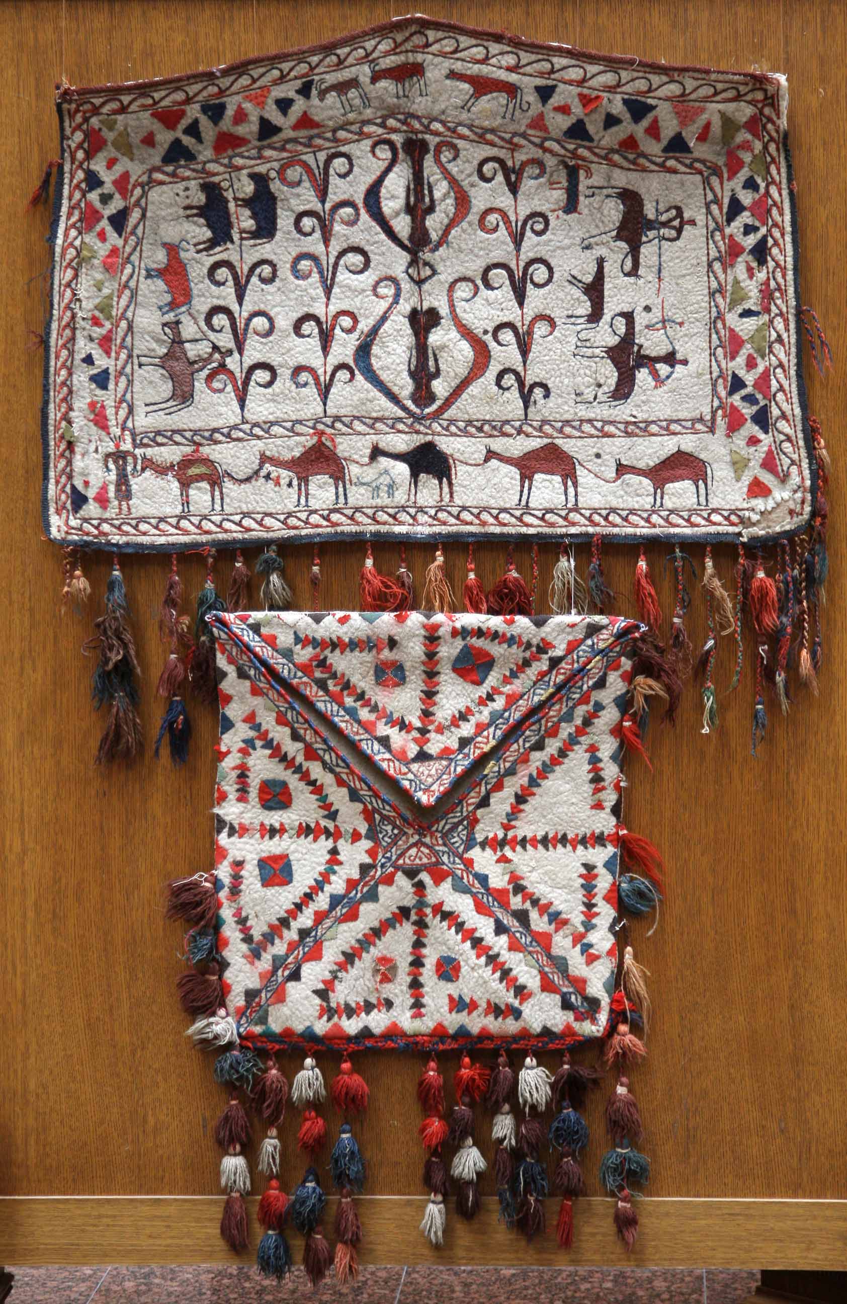 The separate place at an exhibition is given to the articles of women’s clothing, the red, green, yellow capes embroidered with skilful hands of our women and painted in colours of the spring nature, scullcap, a package for a dowry and others. In storehouses of the State museum is kept jewellery made at the beginning of the 20th century. Among them are presented gulyaka, ay halka, eginlik, tumar, yenselik, gosh asyk, four-lane bracelets and the modern jewellery compositions, which decorate the exhibition.