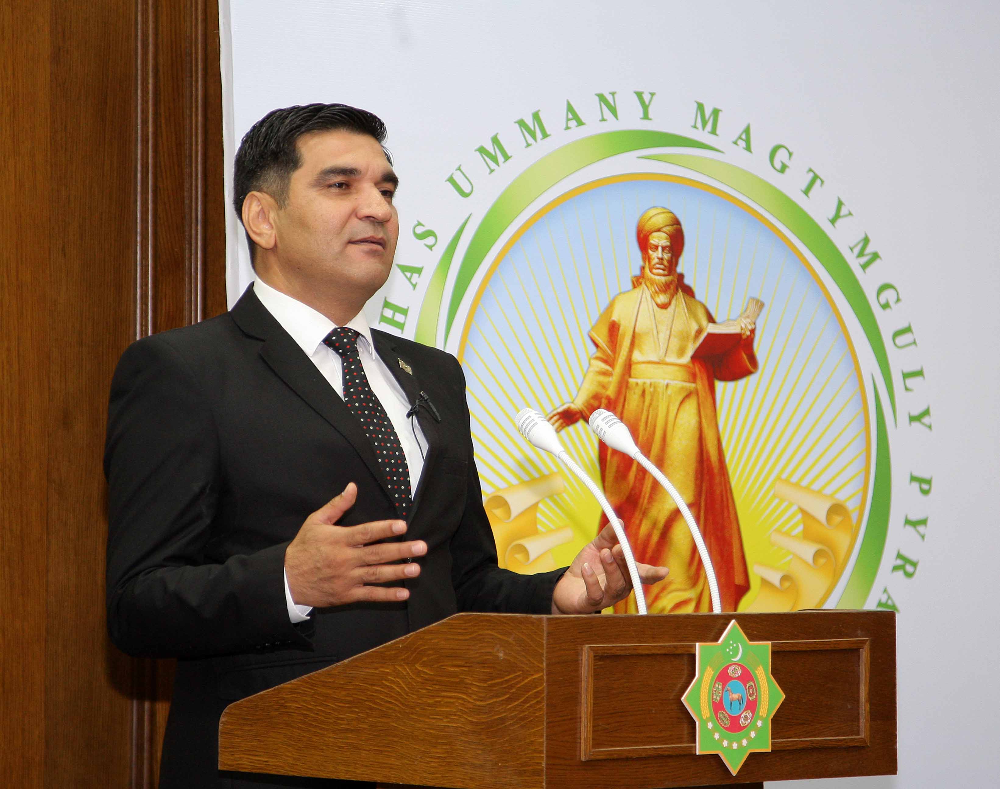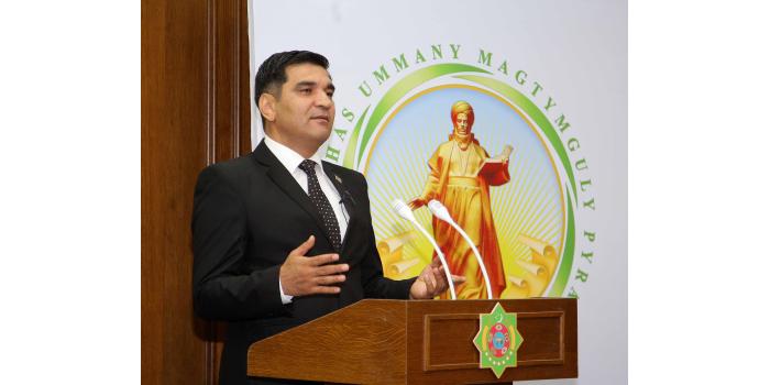 At the era of Revival of a new epoch of the powerful state are created favourable conditions for research of a rich literary heritage of the great master of word Magtymguly Pyragy, which became an unshakeable spiritual support of the people and glorification of Turkmen literature all over the world. On the 23rd of August 2024 at the State museum of the State cultural centre of Turkmenistan has been carried out the creative meeting named «Mind of the thinker – spiritual creation of the people». The meeting was opened by the head of division of the State museum of the State cultural centre of Turkmenistan Durdymyrat Atdayev. Then the floor was given to the subeditor of «Milli goşun» magazine, poet Ashyrmat Garlyyev, senior lecturer of Turkmen State училища art and culture school, poet Jumamyrat Artykov, research officer of Magtymguly Institute of language, literature and national manuscripts of the Academy of Sciences of Turkmenistan, researcher of Magtymguly creative work Yusup Lallakov, actor of Aman Gulmammedov drama theatre of Arkadag city Yagmyr Gurbannazarov. The speakers have especially noticed, that the great master of word Magtymguly Pyragy was the significant personality, who has devoted his life with a substantial and many-sided heritage to service to the native earth and the people and invaluable for all mankind works, preaching humanism, honesty and consent. In the course of the meeting participants have looked a videoclip devoted to creativity of the giant of poetry Magtymguly Pyragy. It has given to a meeting original colouring. After a creative meeting within its network TV channel «Miras» has carried out shooting round-table conversation about a life and creativity of the thinker, the son of Turkmen people Magtymguly Pyragy. Participants of a round-table conversation have told about great value of creativity of Magtymguly Pyragy, who was recognized as the poet of human soul, in patriotic upbringing of rising generation, training of the established personalitiess. In conclusion of a round-table conversation has been expressed gratitude to the Leader of the Nation of the Turkmen people Hero Arkadag, Hero Arkadagly Serdar for the given possibility of research of creativity of Magtymguly Pyragy.
