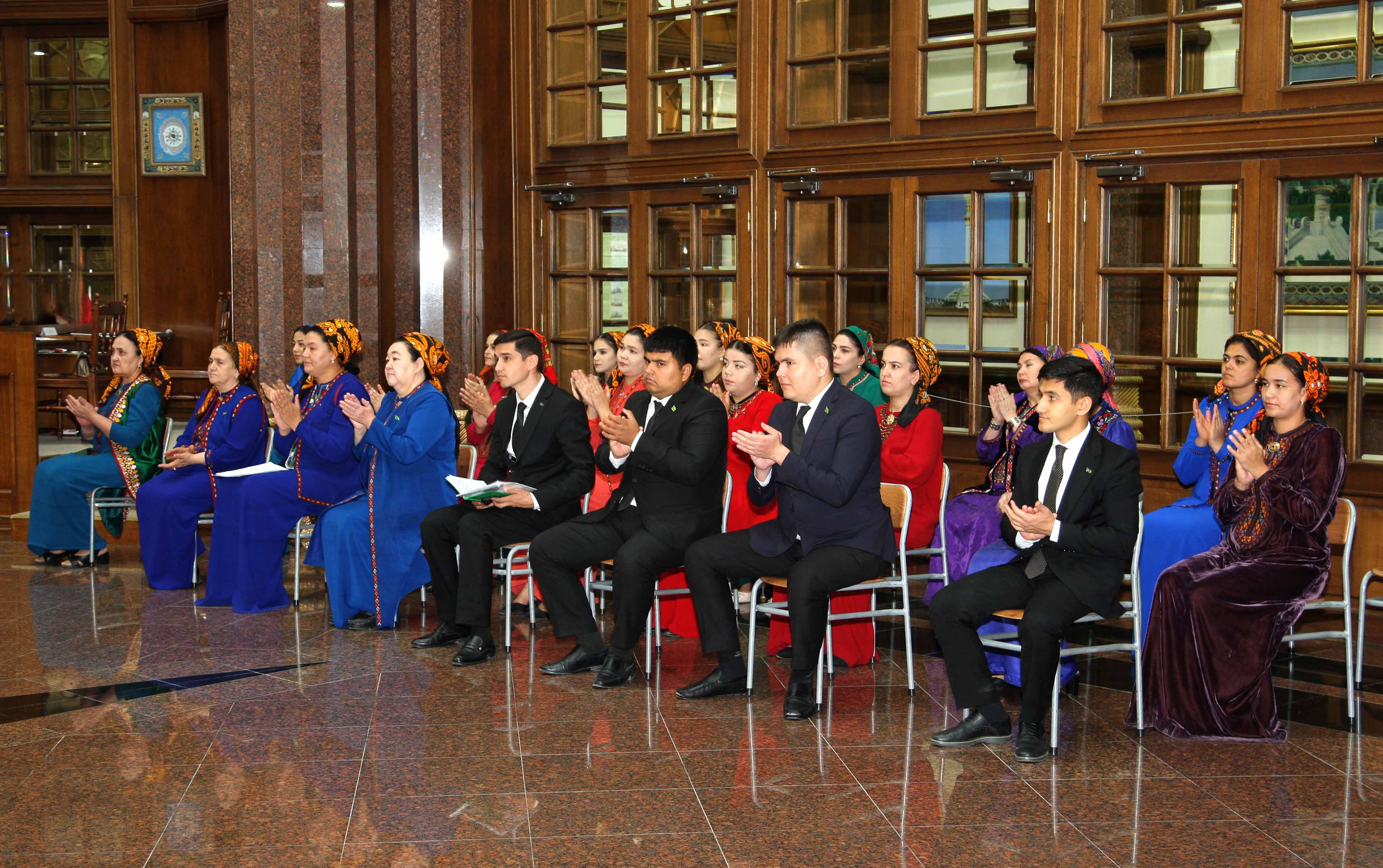 On the 20th of September 2024 at the State museum of the State cultural centre of Turkmenistan was carried out an exhibition named «Independence –glory of our Motherland» dedicated to the 33th anniversary of Independence of Turkmenistan. Century-long dreams of our heroic people, who had glorious history, of the independent, self-reliant state, were carried out in 1991 and there has appeared an independent Turkmen state. Independence is national pride of our lovely people. It is a base of indestructibility of our powerful state, unity and well-being. During the years of Independence our Motherland has achieved big successes in the sphere of a policy, economy and culture. This year proclaimed as «The Fount of Mind Magtymguly Pyragy» was also rich in glorious events. Now Turkmenistan is widely recognized in region as the conciliatory centre where the interstate problems are worked out peacefully, by political and diplomatic settlement. In honour of this holiday at the State museum of State cultural centre of Turkmenistan was carried out an exhibition named «Independence - glory of our Motherland». The exhibition is opened with a portrait of the honourable President, the National flag and the National emblem and wise words of the honourable President about the Independence, is continued by the photos showing the achievements during the years of Independence in various spheres. Videoawards are also dedicated to these achievements. In addition, there are also exhibited the books by the hero Arkadag, fine jewelllery, pictures of Turkmen artists, carpets and carpet products and museum values gloryfying the era of Revival of the new epoch of the powerful state Independence of the country and our prosperous epoch. Тhe exhibition was opened by the deputy head of division of the State museum of the State cultural centre of Turkmenistan Bossan Ataeva with words of greeting. Then the floor was given to deputy of Majlis of Turkmenistan Nepes Rozyev, correspondent of «Edebiýat we sungat» newspaper, poet Suleyman Ilamanov, lecturer of zoology department of Magtymguly Turkmen state university Rahym Saparmyradov, main specialist of Saparmyrat Turkmenbashy museum of Fine Arts of Turkmenistan, chairman of primary woman’s organization Mahri Atdaeva. Their interesting and emotional speeches were met with prolonged applause. Then the guests get acquainted with the exhibition «Independence – glory of our Motherland» and listened to the information of museum staff.