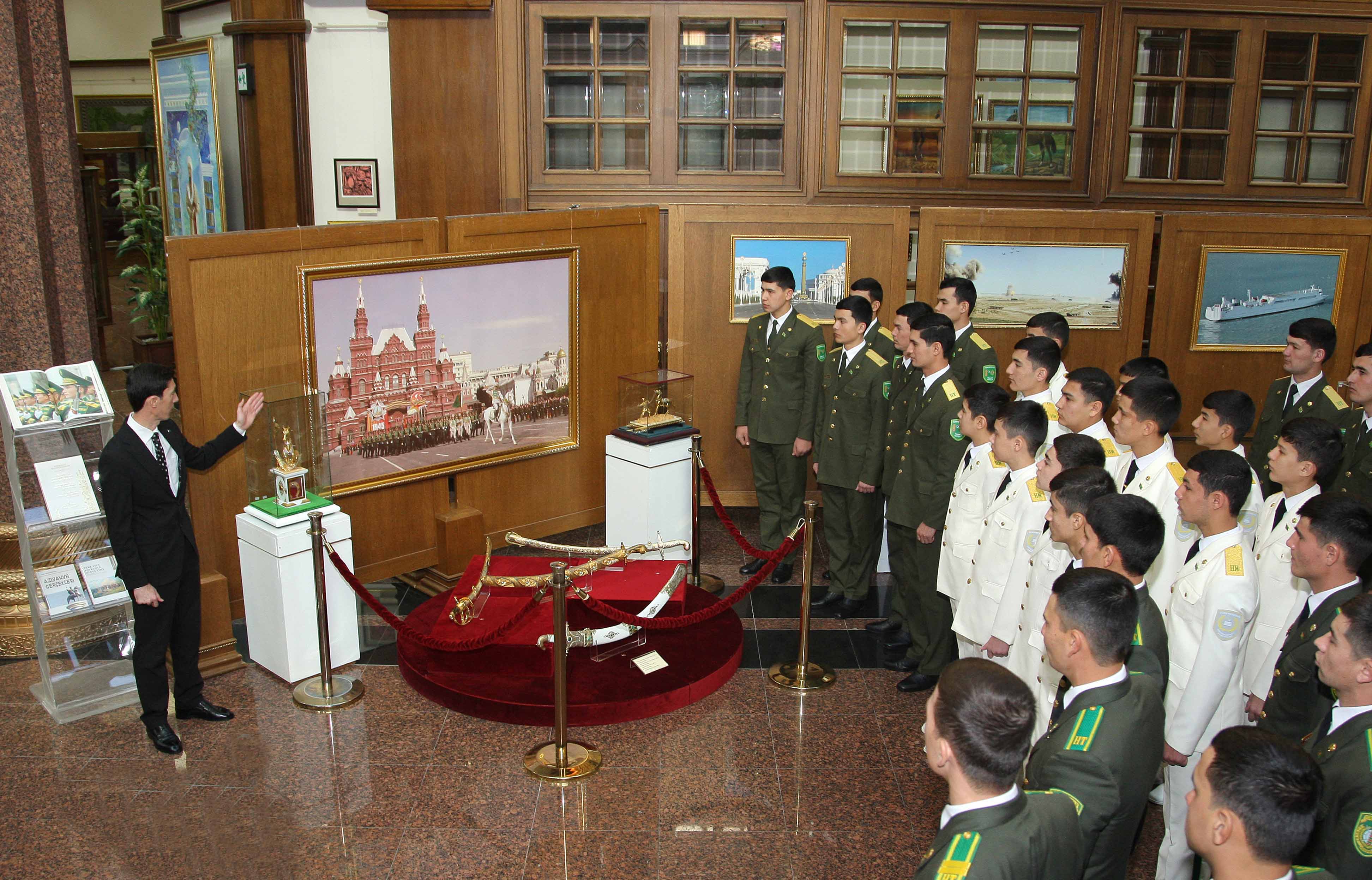 At the State museum of the State cultural centre of Turkmenistan is organized an exhibition «On the guard of the blessed Fatherland», devoted to the day of defenders of Motherland. The exhibition was opened by the director of the State museum of the State cultural centre of Turkmenistan Meretgeldi Charyev, who congratulated with the day of defenders of Motherland and told about the worthy place of Turkmen soldier in the defence of peaceful and successful Motherland. Then the floor was given to the subeditor of «Milli goşun» magazine Ashyrmet Garlyev, serviceman of the State border service of Turkmenistan, senior lieutenant Agamammet Toilyev, specialist in organization of public relations of upbringing department of Saparmyrat Turkmenbashy the Great Military institute of the Ministry of defence of Turkmenistan, major Kerim Myradov, who have told about defence capability of National army, a fighting strength and the reached successes. They have noted fidelity to the military oath and a soldier's duty and about a great honour to be awarded glories as well. Then serviceman of Berdimuhamet Annaev the 1st Specialized military school of the Ministry of defence of Turkmenistan, major Nabat Nurgeldieva has told that one of the important problems is upbringing of military men in respect for a national heritage of the country, love to the Fatherland, protection of peaceful labour and a safe life of the people. Student of the Institute of border service of Turkmenistan Shyhberdi Ataev has told about the wise policy carried out by the honourable President, which provides problem-free life of the present and the next generations, care of the youth and expressed his gratitude to Hero Arkadag and Arkadagly Hero Serdar.