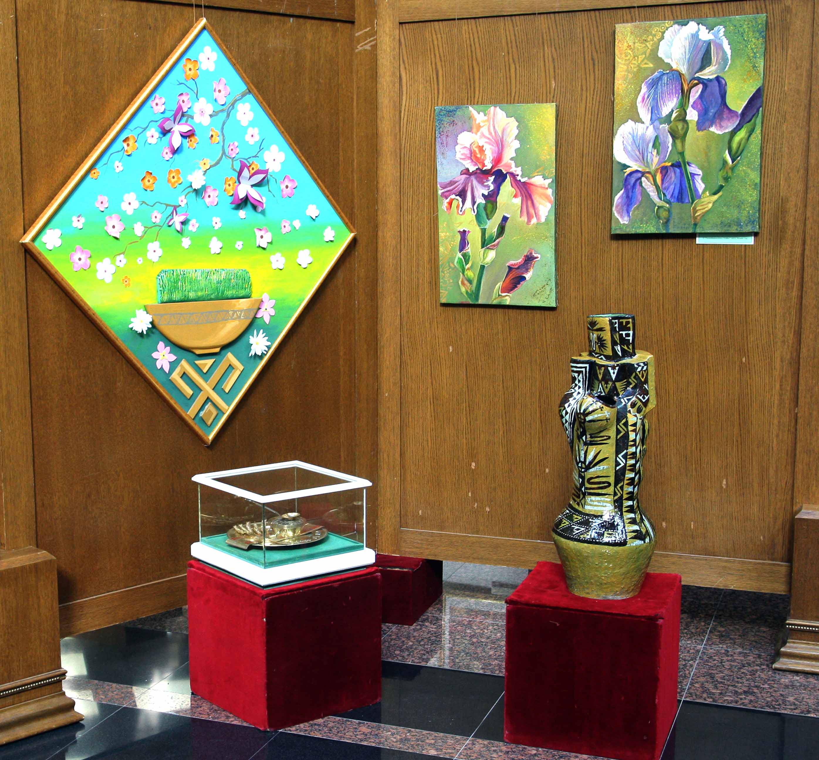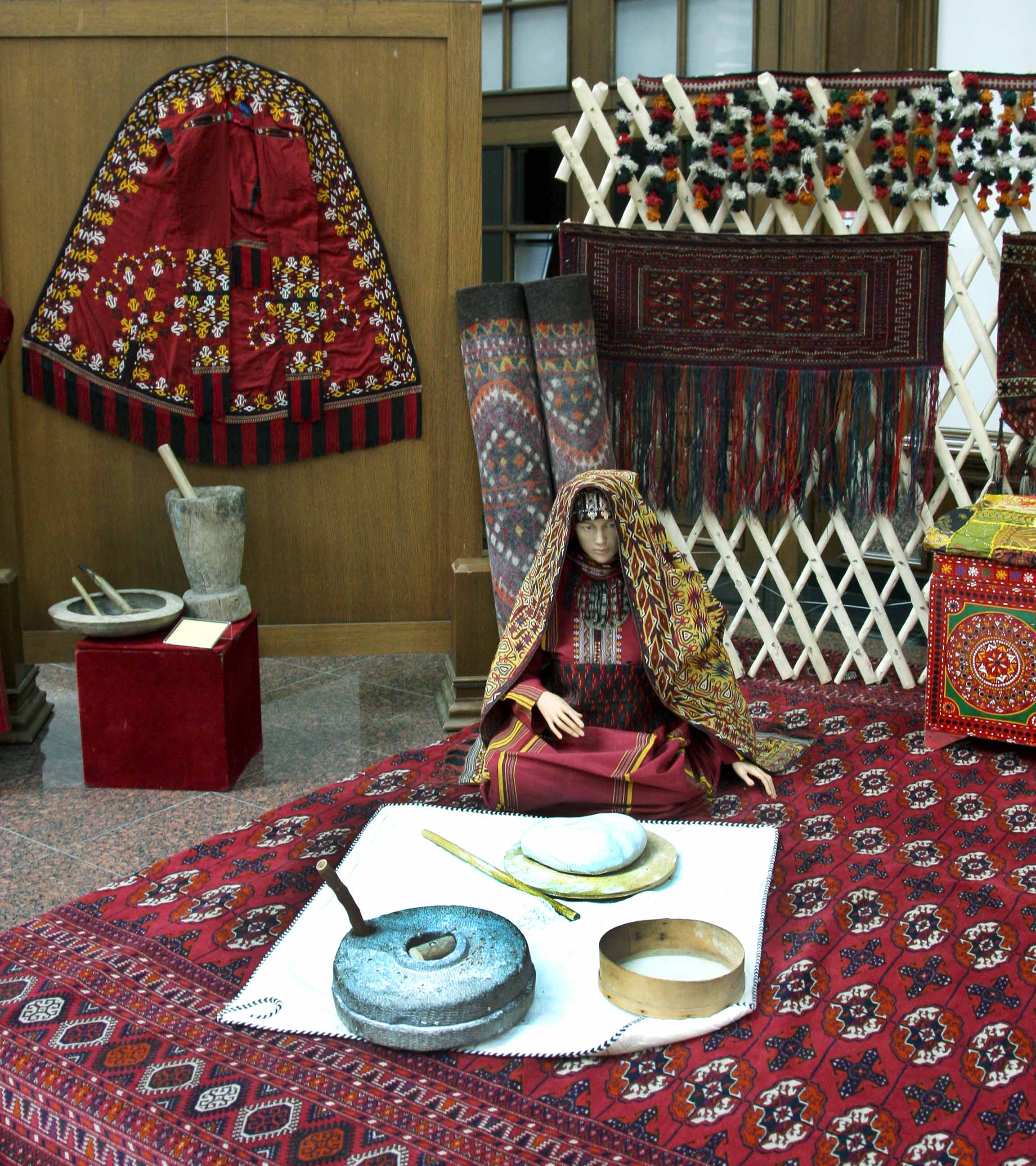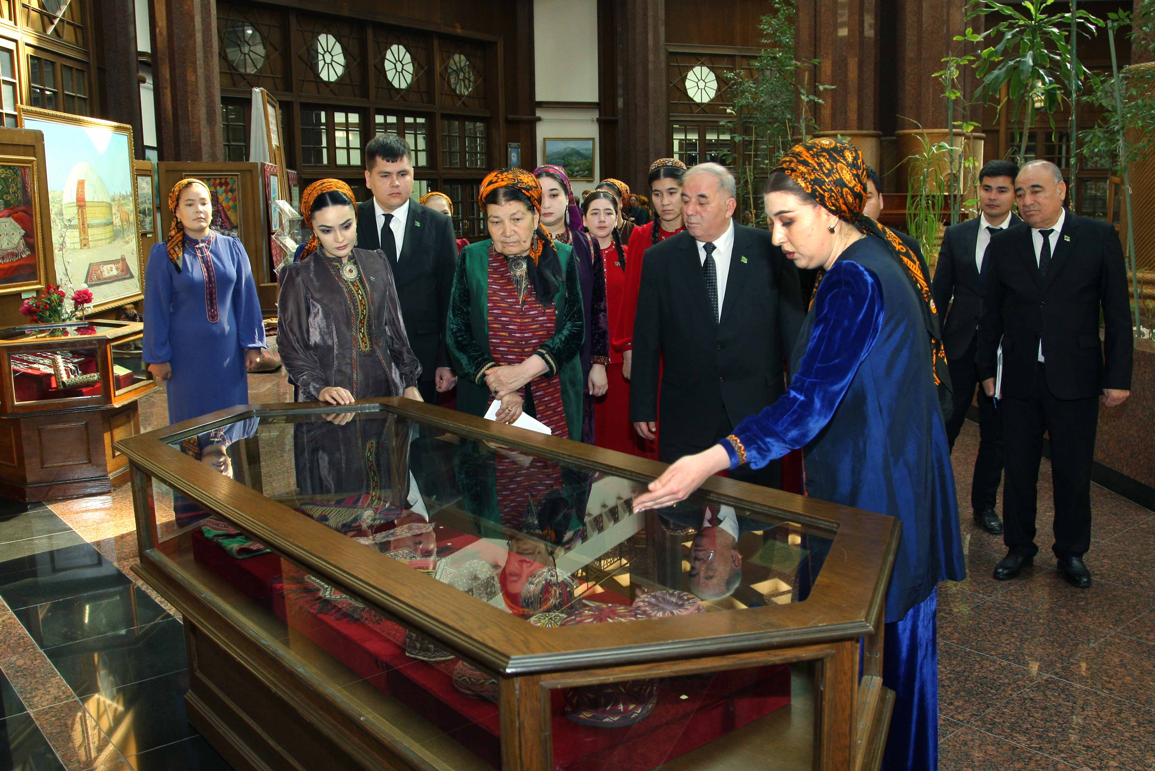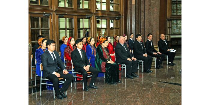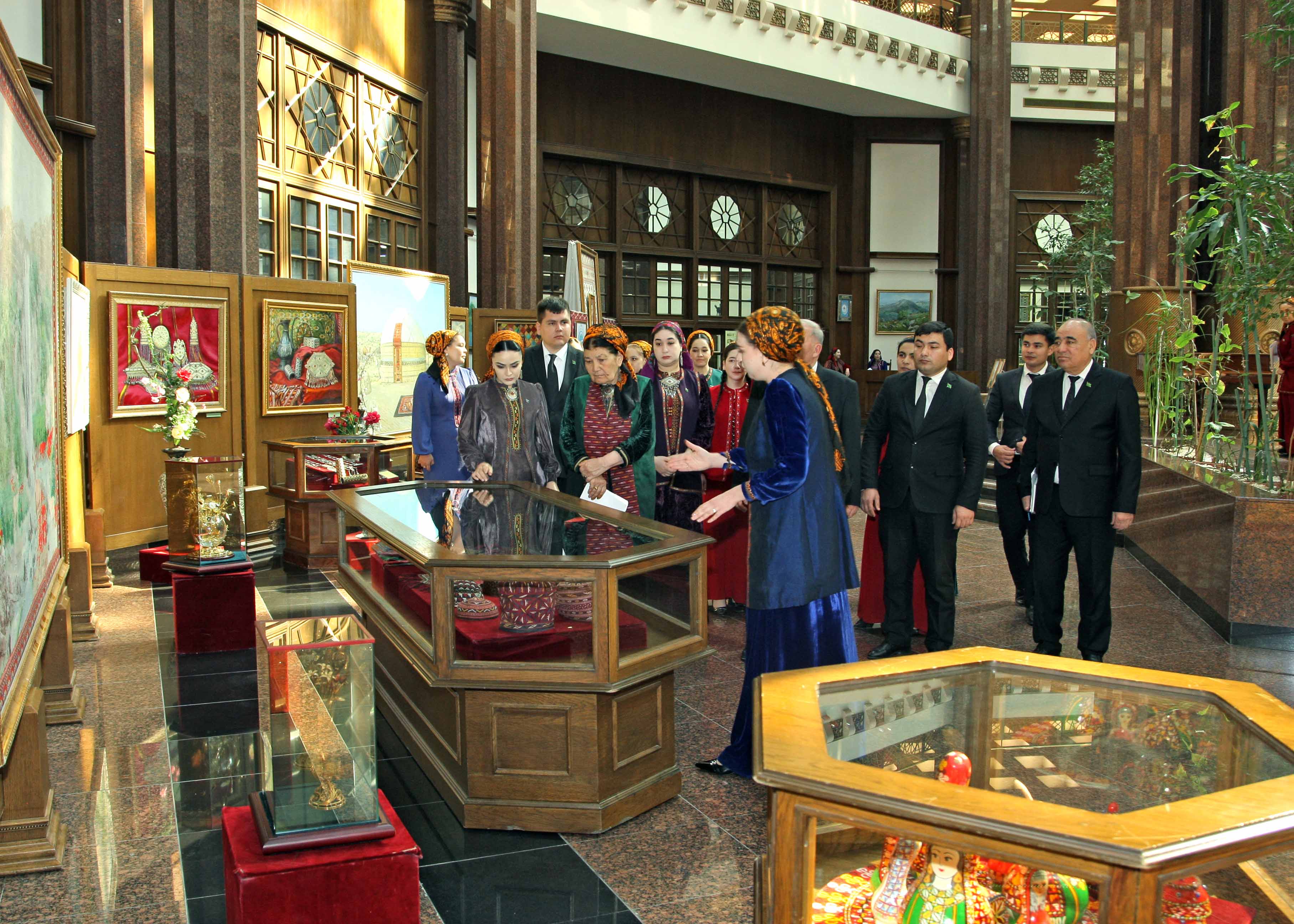 At the era of Revival of a new epoch of the powerful state, in “The International year of peace and trust” in all the parts of our country in honour of International Novruz holiday on spring lawns with enthusiasm are developed various musical celebrations, performances of folklore ensembles and national games. Along with it at the State museum of the State cultural centre of Turkmenistan in honour of the International spring Novruz holiday is organized an exhibition named “Motion of the new day". At the exhibition are presented classical values well-known for their beauty, magnificence and grace. Besides it, in a prominent place are located the works of artists glorifying beauty of Turkmen spring, the jewellery made at the higher art level, the national costumes decorated with a fine embroidery. Products of national workmanship dutar and gidjak, articles of everyday use are offered to the attention of visitors. Original harmony create the carpets pictures personifying the Turkmen nature, the pastures covered with green grass, fields of poppies and animal world. In the course of the exhibition is also possible to see a mannequin in the national woman's wear, milling a flour before tarim, decorated with carpets and carpet products, and messengers of Novruz holiday sprouted spikelets of wheat, national food pishme and a semeni, increasing a celebratory shade. The exhibition was opened by the senior research fellow of the museum of the President of Turkmenistan of the State museum of the State cultural centre of Turkmenistan Jahan Nazarova. Then the floor was given to the Honoured cultural worker of Turkmenistan, poetess Oguljemal Charyeva, People’s writer of Turkmenistan Dovletgeldi Annamyradov, senior teacher of Turkmen State art and culture college Jumaberdi Artykow, student of the Academy of the State service near the President of Turkmenistan Garahanjar Baikhanov and student of the Turkmen State medical institute Nursoltan Derуaeva.