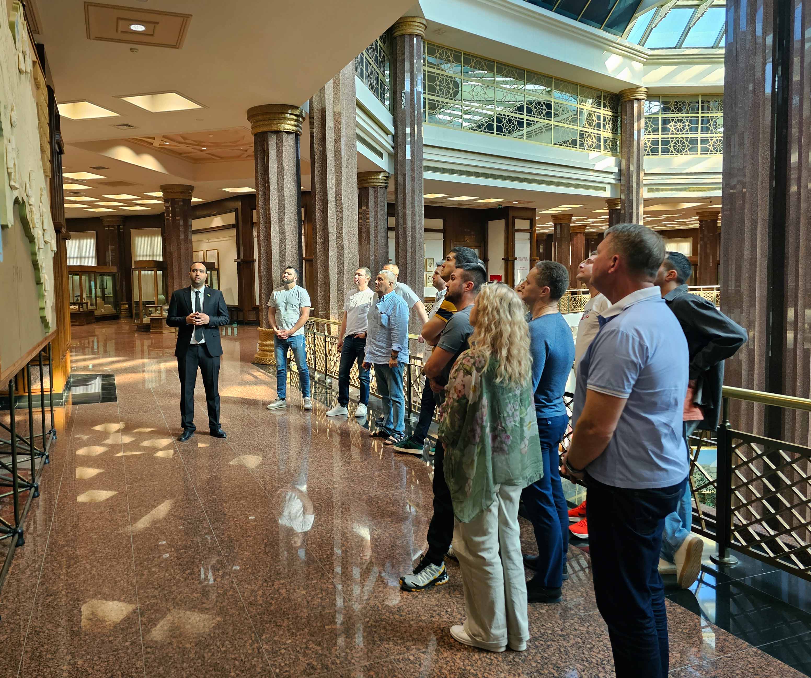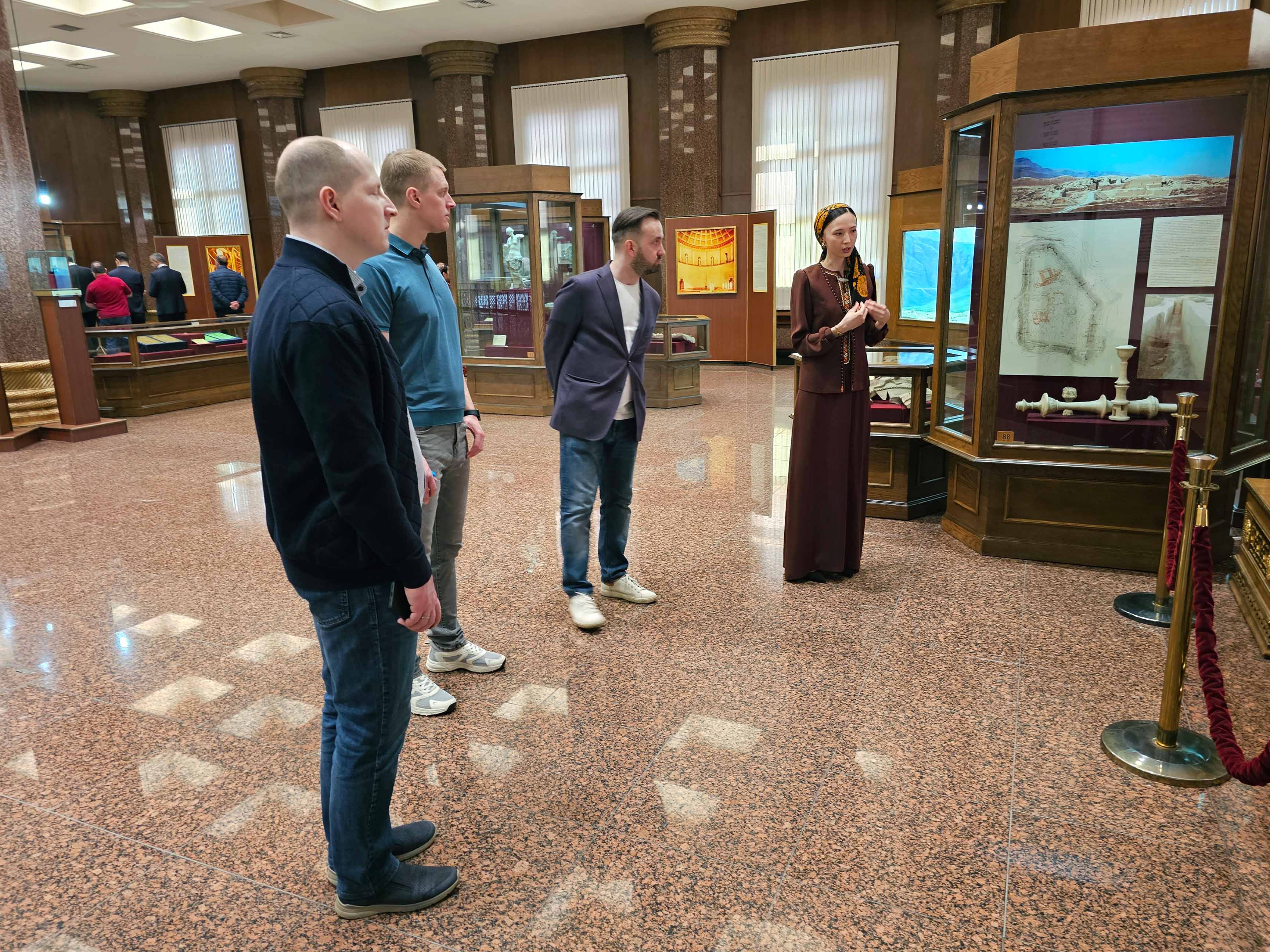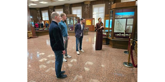 On the 16th of March 2025 the participants of the exhibition, initiated to the 17th anniversary of the establishment of the Union of Industrialists and Entrepreneurs of Turkmenistan and the international forum for attracting investments in the private industry called «Investments in Future of Turkmenistan» visited the State museum of the State cultural centre of Turkmenistan. Representatives of about thirty countries got acquainted with the historical and archaeological monuments of Turkmenistan and the finds discovered in those places. Museum specialists Charyev Gocmyrat, Mamiyeva Gulalek, Yarmammedov Owez, Orazmammedov Edilmukhammet, Kakabaeva Gurbanbibi, Gurbanova Guljan, Annamyradov Annamyrat conducted a tour of the museum in different languages. Representatives of foreign countries spoke positively about the museum building and its values, also spoke about their impressions of the museum.