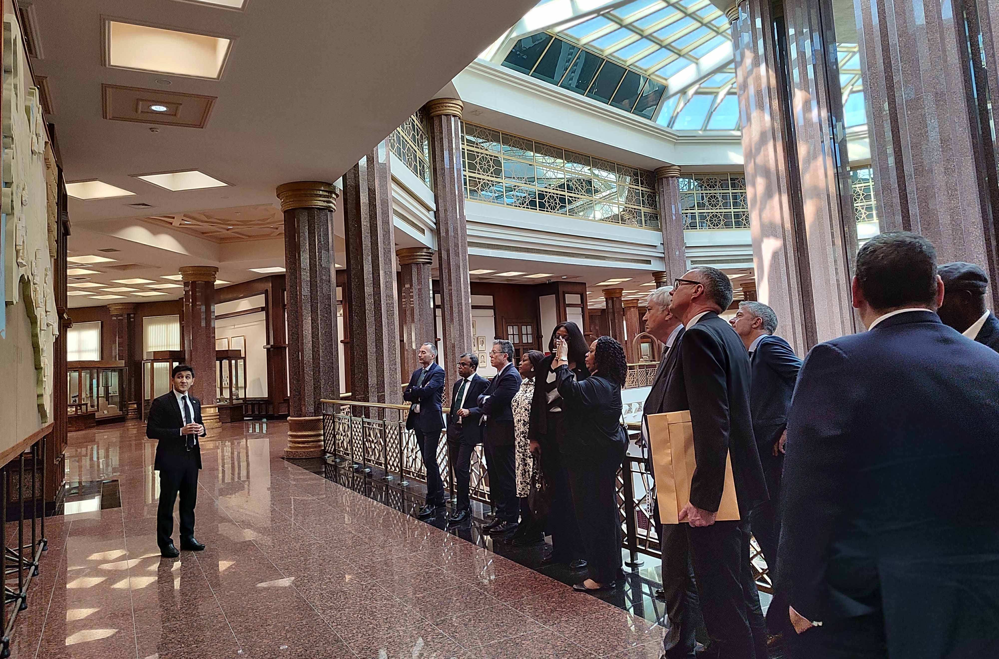 On the occasion of the 17-th anniversary of the establishment of the Union of Industrialists and Entrepreneurs of Turkmenistan, a forum was held and was organized an exhibition, with the participation of entrepreneurs and businessmen from several countries. On the 18th of March 2025 a delegation under the head of the General Secretary of the International Exhibitions Bureu Dmitry Kerkentzes visited the State museum of the State cultural centre of Turkmenistan. The guests toured the historical exposition of the museum, which preserves the historical and cultural values of the Turkmen people, and got acquainted with the archaeological monuments and historical values found there. The guests expressed their appreciation for the magnificent building of the State Museum, its decorative features, the rich and ancient history of the Turkmen people and the valuable findings.