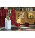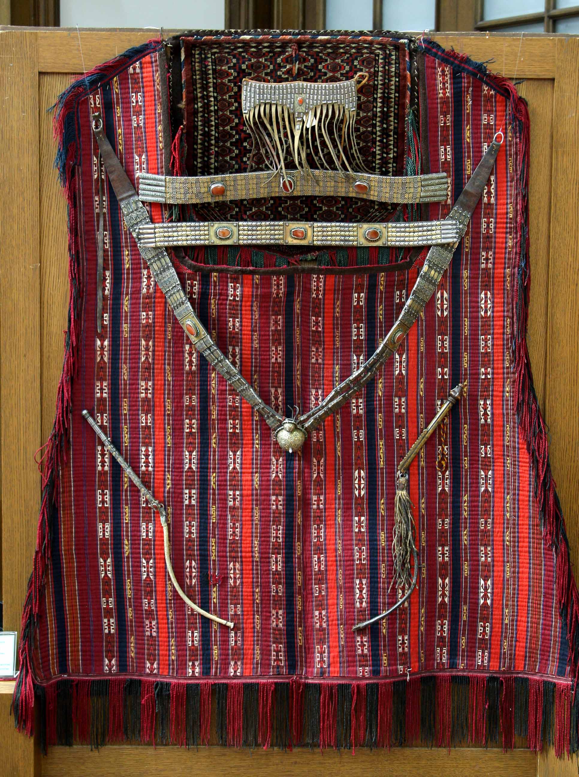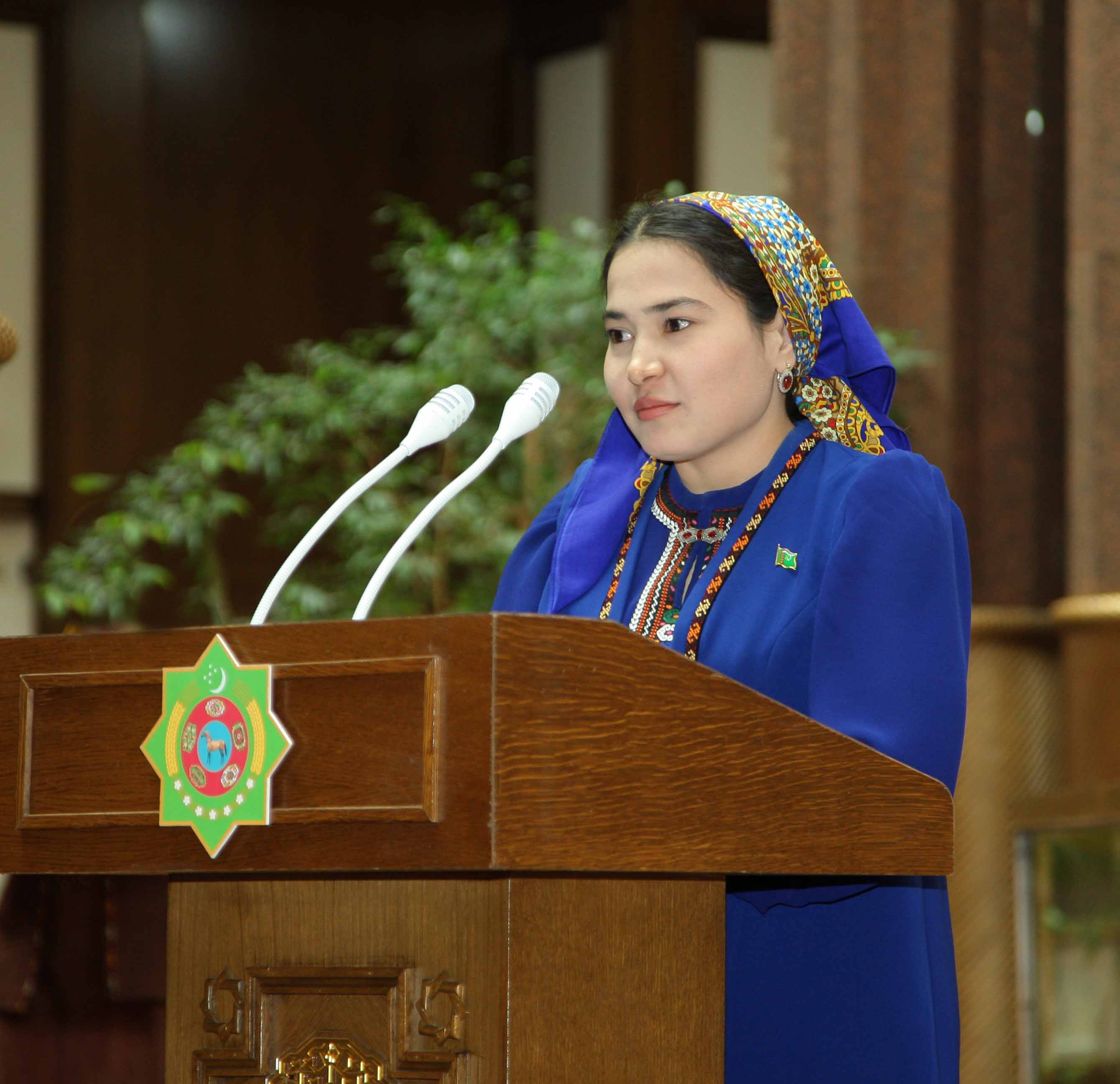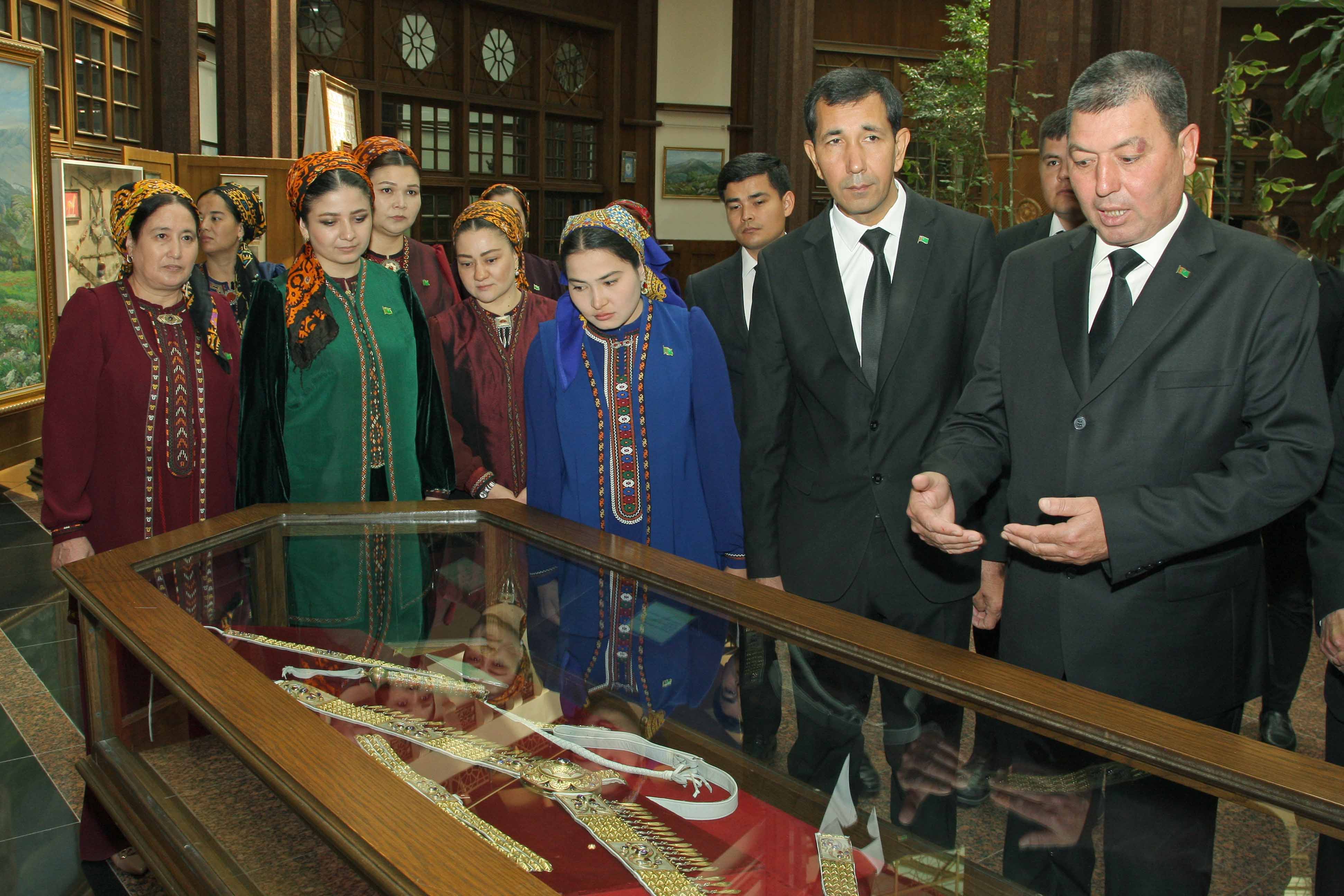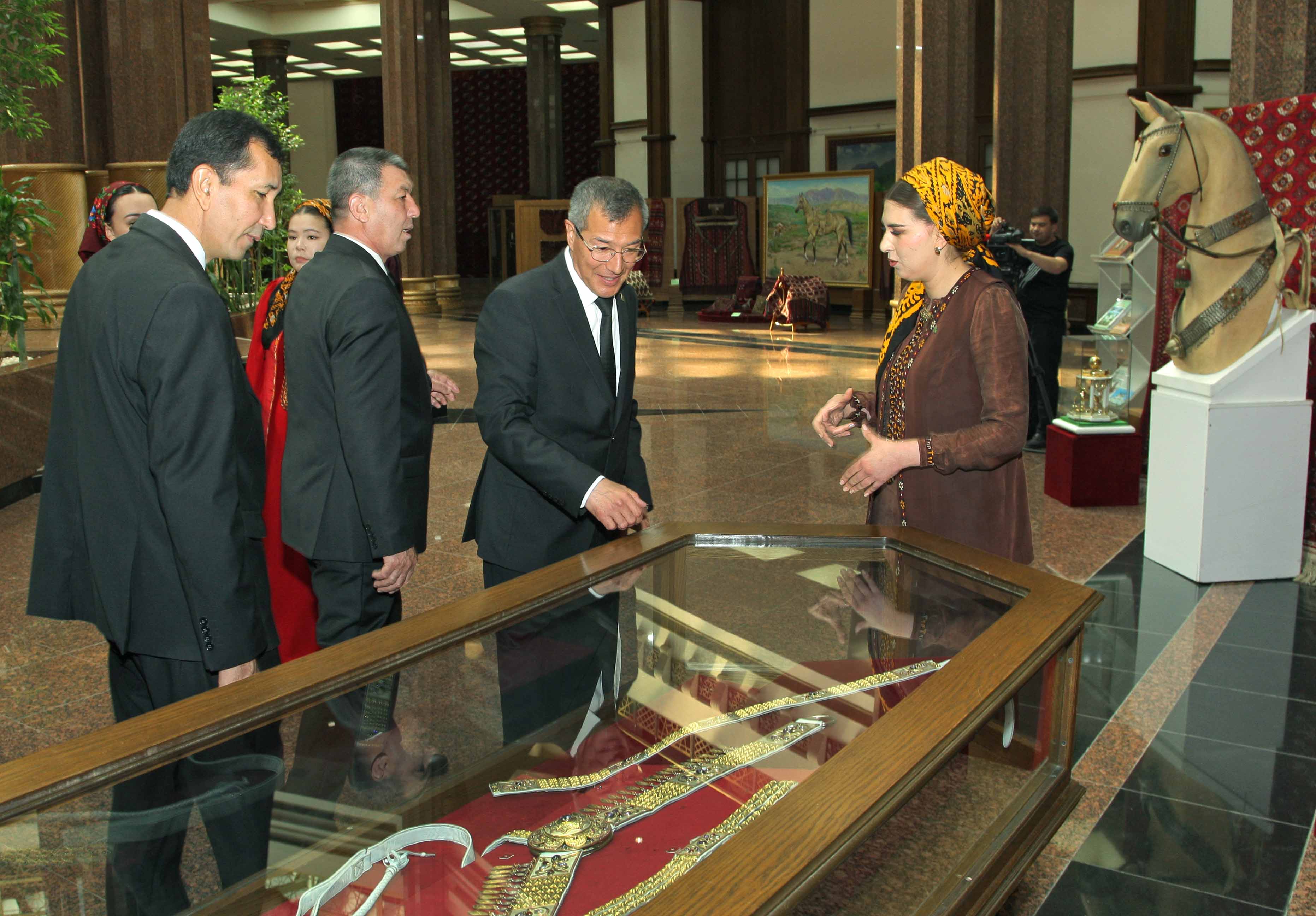 At the era of Revival of a new epoch of the powerful state our Motherland Turkmenistan, which is developed in a prompt rate thanks to tireless care of Hero Arkadag and the honourable President is signified by celebrations. Annual solemn celebration celebrated of a Day of Turkmen racer on last Sunday of April is a sign on the honour rendered to Akhalteke horse. At the State museum of the State cultural centre of Turkmenistan is organized a festive exhibition named «High respect to horse» in honour of a national Day of Turkmen racer. At the exhibition are presented the pictures of known artists, which glorify racers. Our ancestors considered a saddle of a horse to be more honourable than a throne, rendered all honour to a horse, adorned it with jewellery and carpet products. Here the special attention attract the ancient irreproachably decorated harness of Akhalteke horse. Horse accessories have also found their place at the exhibition: a saddle, a stirrup, whips, a bridle, a case for drinking bowl and a horseshoe, adornments: a breast collar, blinkers, front strap, an amulet. There are also horse cloths, shabrack, sweat cloth, feed bags for horses, saddle bags woven and decorated with a fringe, articles from felt mat enrich an exhibition still more. At the exhibition it is also possible to see modern jewellery, which glorify Akhalteke racers and mean prompt development of the epoch. In the course of the exhibition we can see an image of a Turkmen racer woven on a carpet, drawn on a picture and in a sculpture.