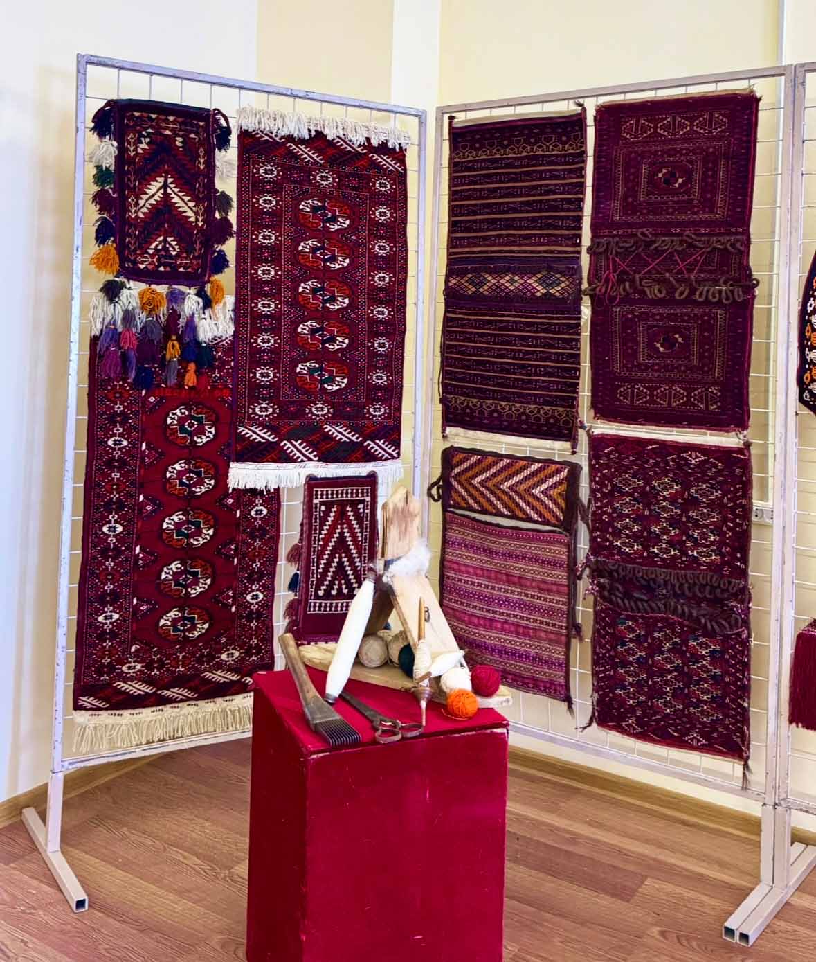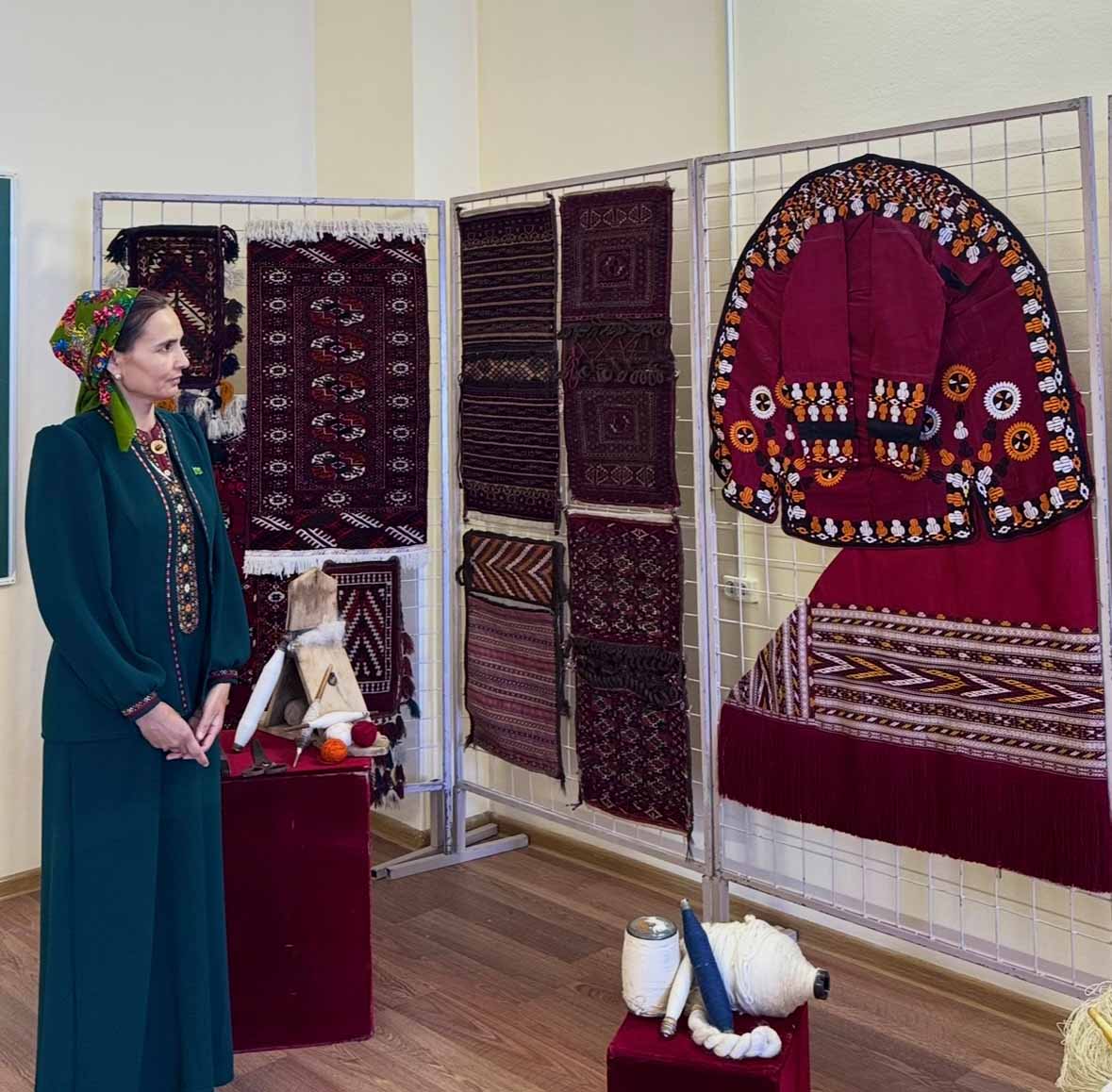 One of the basic problems of museum workers is advanced study of the national values created by our ancestors within centuries and their popularization among the people. For this purpose the State museum of the State cultural centre of Turkmenistan regularly organizes guest exhibitions composed of museum values in educational institutions of the country. For closer acquaintance of students with a national heritage the State museum of the State cultural centre of Turkmenistan at the period from the 5th up to the 10th of May 2025 in honour of “The International year of peace and trust” has organized in Ashgabat mechanical and technological technical secondary school of the Ministry of textile industry of Turkmenistan a guest exhibition named “Peaceful country, beloved Turkmenistan”. At the exhibition were presented Turkmen carpets and carpet products, national costumes and articles of everyday use. We we are proud of the fact that students have come to acquaint with museum values, that they were interested very much in the national heritage and all it had influence on perfection of their spiritual world. Students of technical secondary school have found some interesting information among museum values. In the course of the exhibition teaching stuff and students of the educational institution have expressed their gratitude to the specialists of the museum for the interesting information about the national heritage.