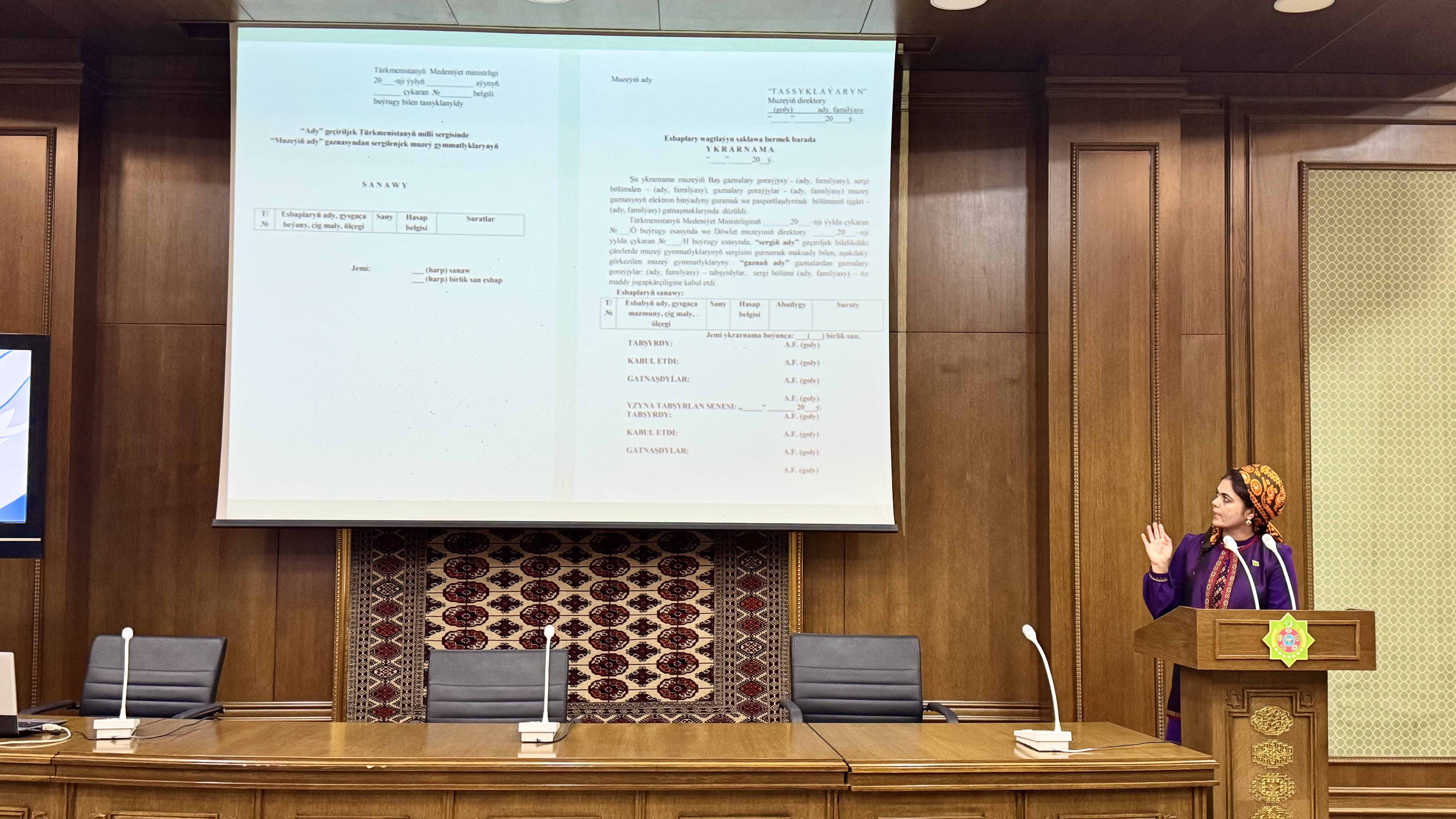 On the 29th-30th of May 2025 at the State museum of the State cultural centre of Turkmenistan was carried out two-day methodological seminar «Turkmenistan – Motherland of peace and trust» with participation of museums workers of the country jointly with Methodological administration of the State cultural centre of Turkmenistan. At the inauguration of the seminar heads of museums have made reports on various themes, about a role of museums in the international cultural relations, work on a kitting-up, examination and cataloging of museum values, about the future of museums: virtual exhibitions and 3D expositions, a role and public influence of exhibitions in popularization of national values, a museum and a society: ways of activization of contacts with the population, museums - keepers and popularizers of the national creative heritage, meaning of museums in patriotic training of youth, Turkmenistan – Motherland of peace and trust. In the course of the seminar specialists of the State museum and of other museums of the country have conducted the expanded methodological lessons in the form of questions and answers and there have been demonstrated slides on use of virtual space and the Internet in museum business, computer literacy, electronic cataloging of museum values.