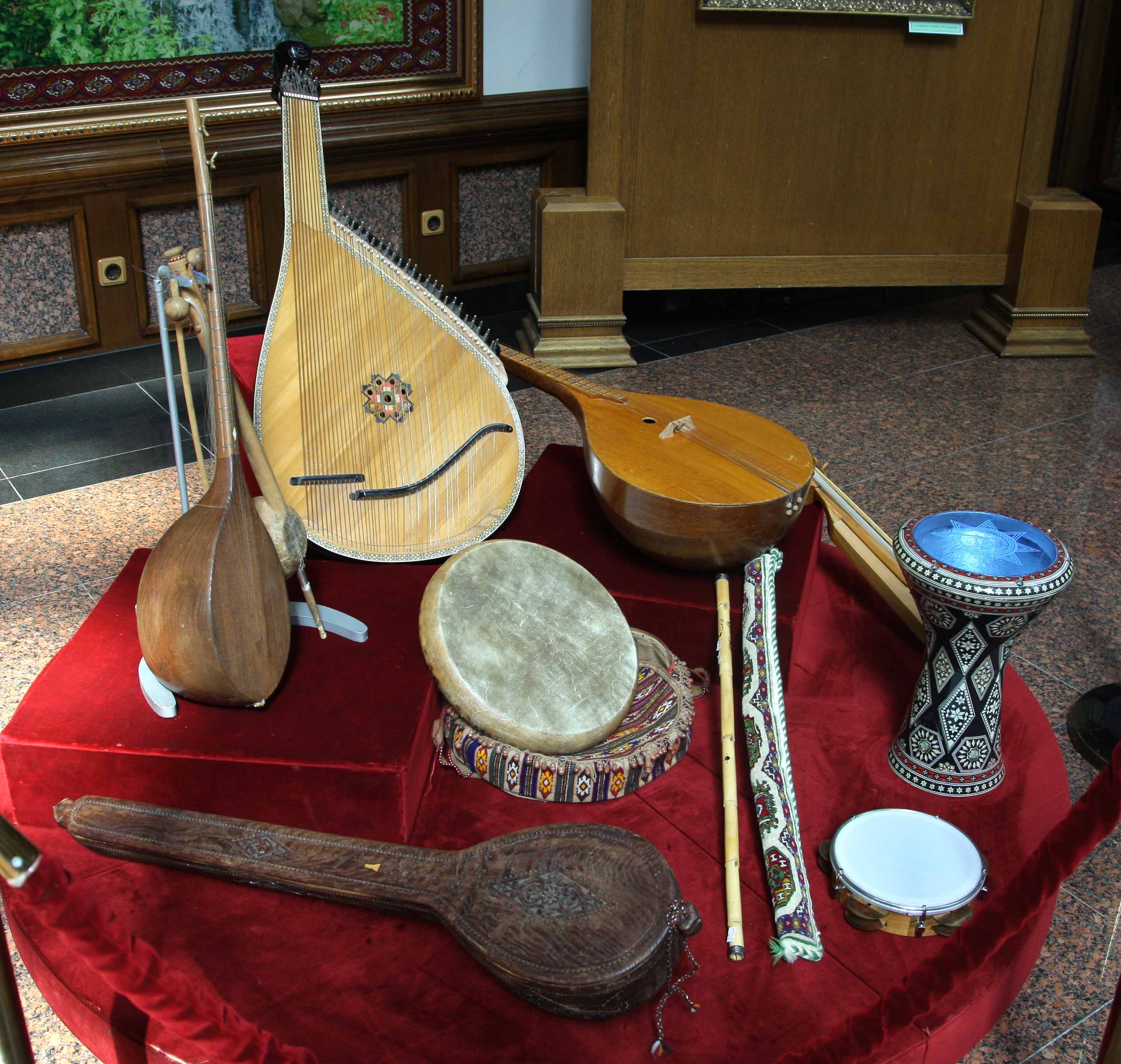 At the exhibition have found their place works of G.Tоrаеv «Kunyaurgench», G.Nurlyev «Sultan Sanjar», «Shirbekir Mausoleum», « Myane baba Mausoleum», glorifying ancient monuments, and works of the People’s artist of Turkmenistan Ch.Amangeldiev «Rodoguna» and «Tomiris» as well. Here are also presented elite values dutar, gijak, a pipe, a tambourine, which are a part of 72 musical instruments, which adorn holidays of the Turkmen people.