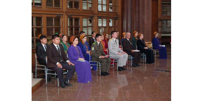 The exhibition was opened and conducted by the senior research officer of the division of fine arts of the State museum of the State cultural centre of Turkmenistan Dovletmyrat Rejepov. Then the floor was given to the chairman of Mary velayat centre of the international association “Turkmen alabais” Atamyrat Suleymanov, the chairman of Dashoguz velayat centre of the international association “Turkmen alabais”председатель Haldurdy Gochov, senior lieutenant of the State border service of Turkmenistan Serdar Batyrov, lecturer of Turkmen State architectural institute, chairman of the primary women’s organization Gurbangozel Gulamova, lecturer of Turkmen State architectural institute Guljemal Jennelova, lecturer of Turkmen State architectural institute Akgul Bailyeva, third year student of Turkmen State border service institute Ilaman Satlykov, who told a lot of interesting about alabai.