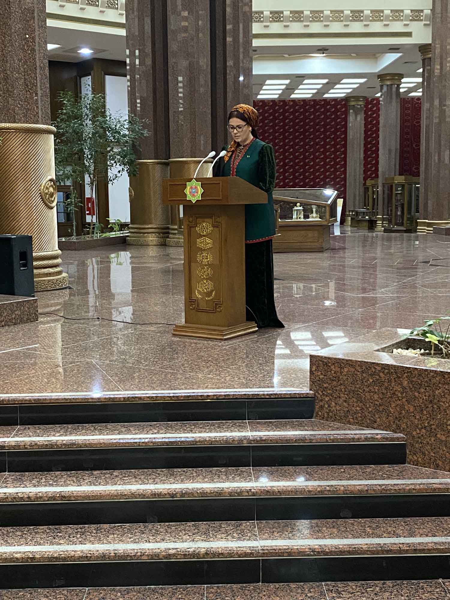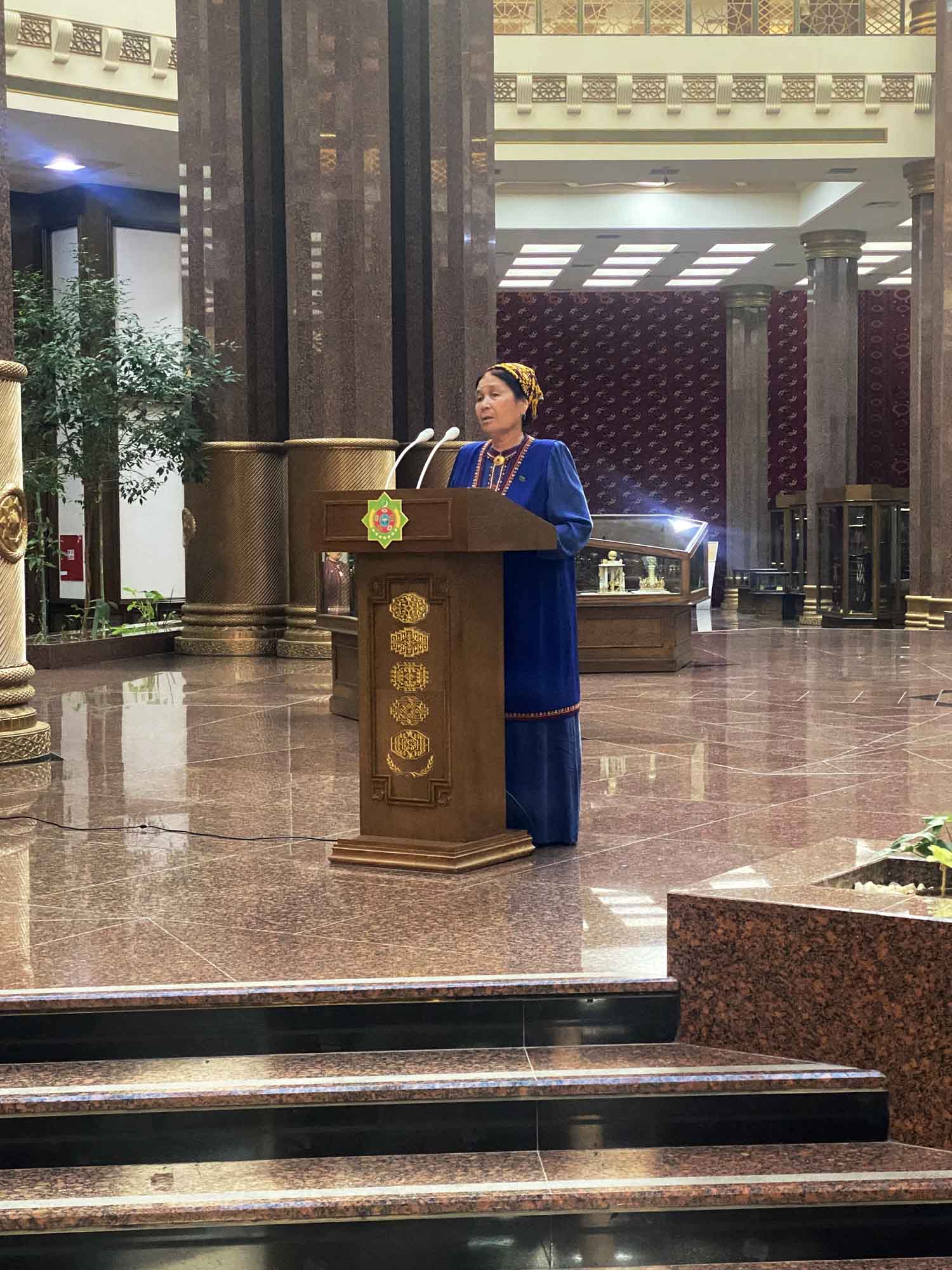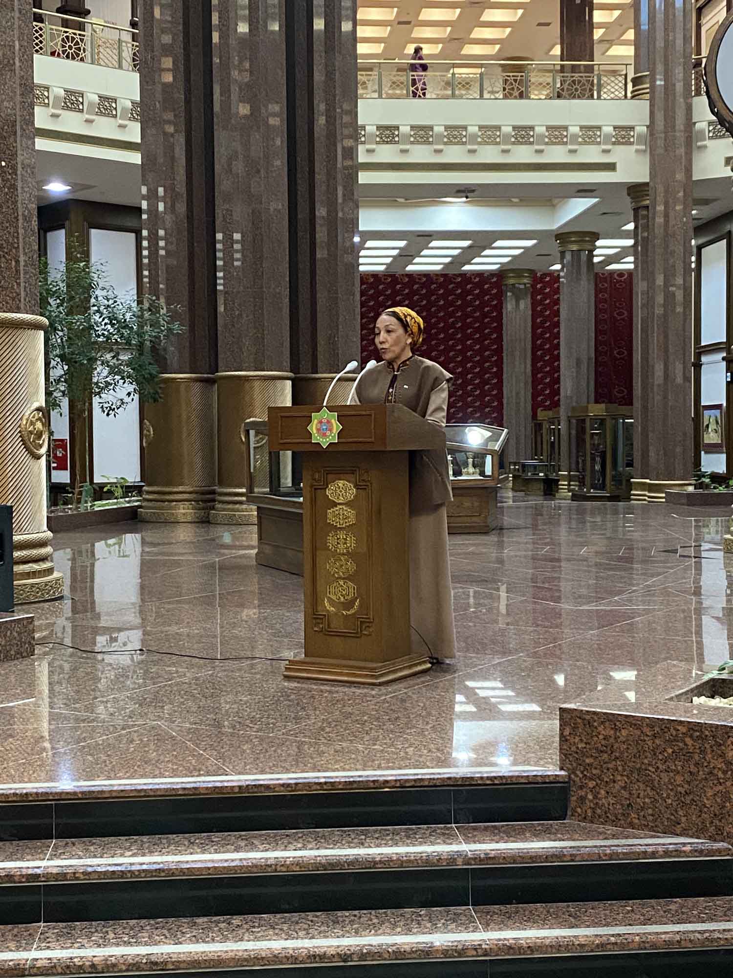 The floor was given to the main specialist of the Ashgabat municipal committee of the Agrarian party of Turkmenistan Serdar Sazakov, postgraduate student of the National institute of Desert, vegetation and animal world of the Ministry of environmental protection of Turkmenistan Gulnar Yarbazova, the I category librarian of the State library of the State cultural centre of Turkmenistan, Honoured cultural worker of Turkmenistan Oguljemal Orazdurdyeva, lecturer of the State Academy of Fine Arts of Turkmenistan, Honoured cultural worker of Turkmenistan Azat Annaev, head of produce processing department of S.A.Nyyazov Turkmen Agricultural University Yazgeldi Saryev and senior staff scientist of the Department of Ancient and Medieval history of the institute of History and Archaeology of the Academy of Sciences of Turkmenistan Sahra Yusupova and research officer of «Bereketli Garagum» reserve Abrai Omatov.