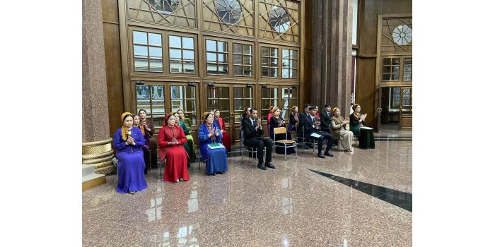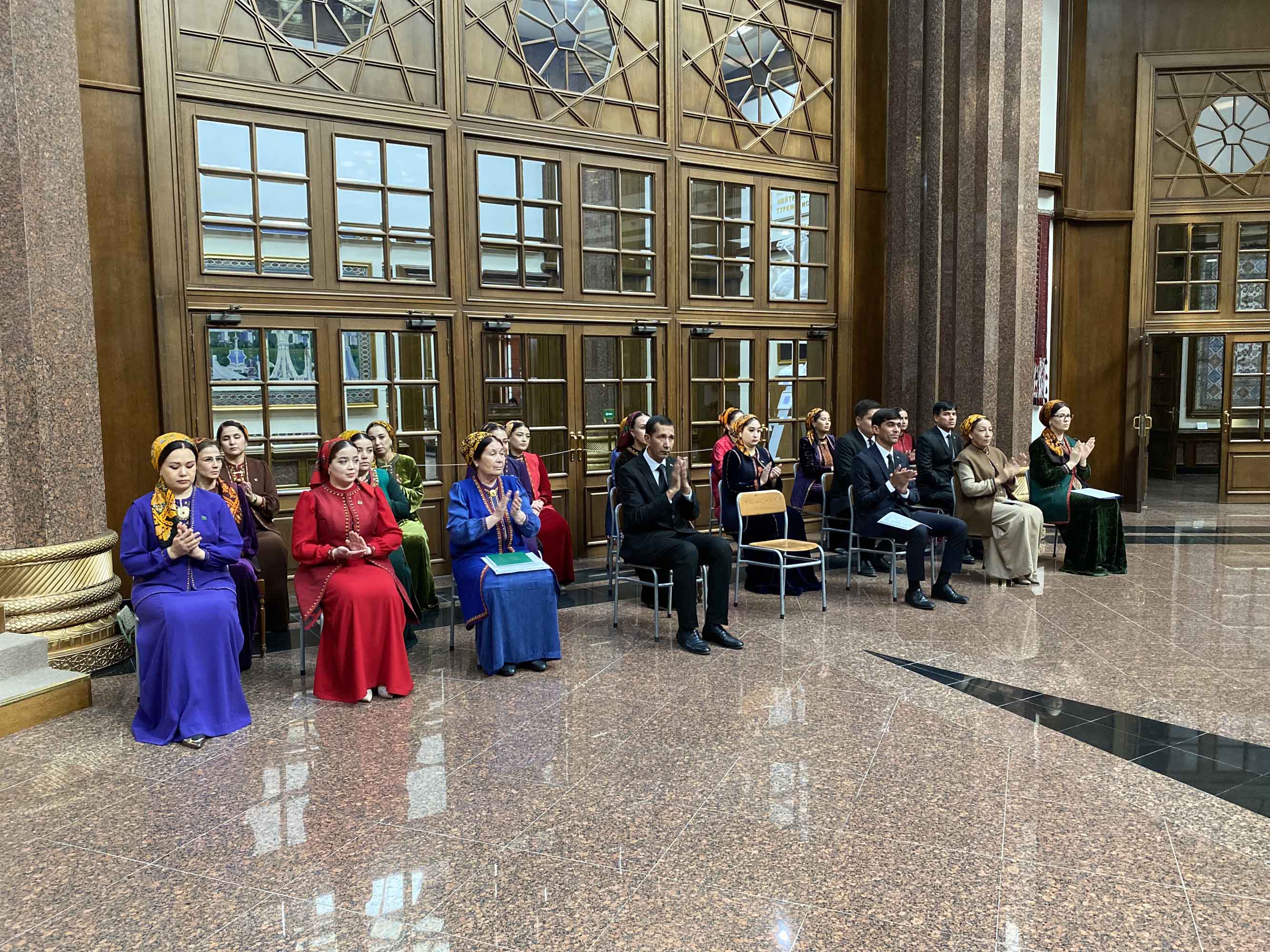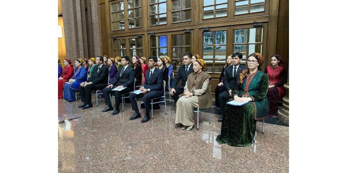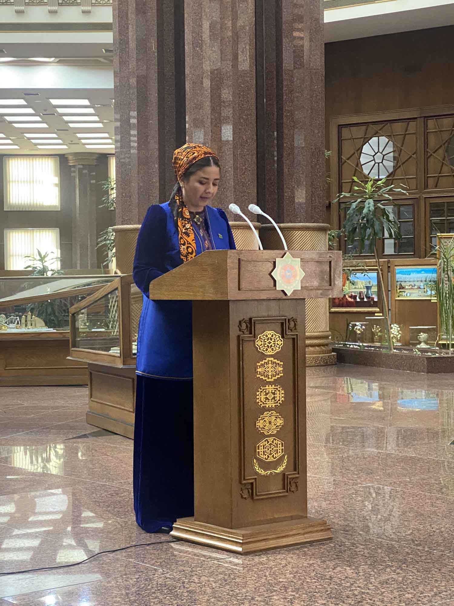 The floor was given to the main specialist of the Ashgabat municipal committee of the Agrarian party of Turkmenistan Serdar Sazakov, postgraduate student of the National institute of Desert, vegetation and animal world of the Ministry of environmental protection of Turkmenistan Gulnar Yarbazova, the I category librarian of the State library of the State cultural centre of Turkmenistan, Honoured cultural worker of Turkmenistan Oguljemal Orazdurdyeva, lecturer of the State Academy of Fine Arts of Turkmenistan, Honoured cultural worker of Turkmenistan Azat Annaev, head of produce processing department of S.A.Nyyazov Turkmen Agricultural University Yazgeldi Saryev and senior staff scientist of the Department of Ancient and Medieval history of the institute of History and Archaeology of the Academy of Sciences of Turkmenistan Sahra Yusupova and research officer of «Bereketli Garagum» reserve Abrai Omatov.