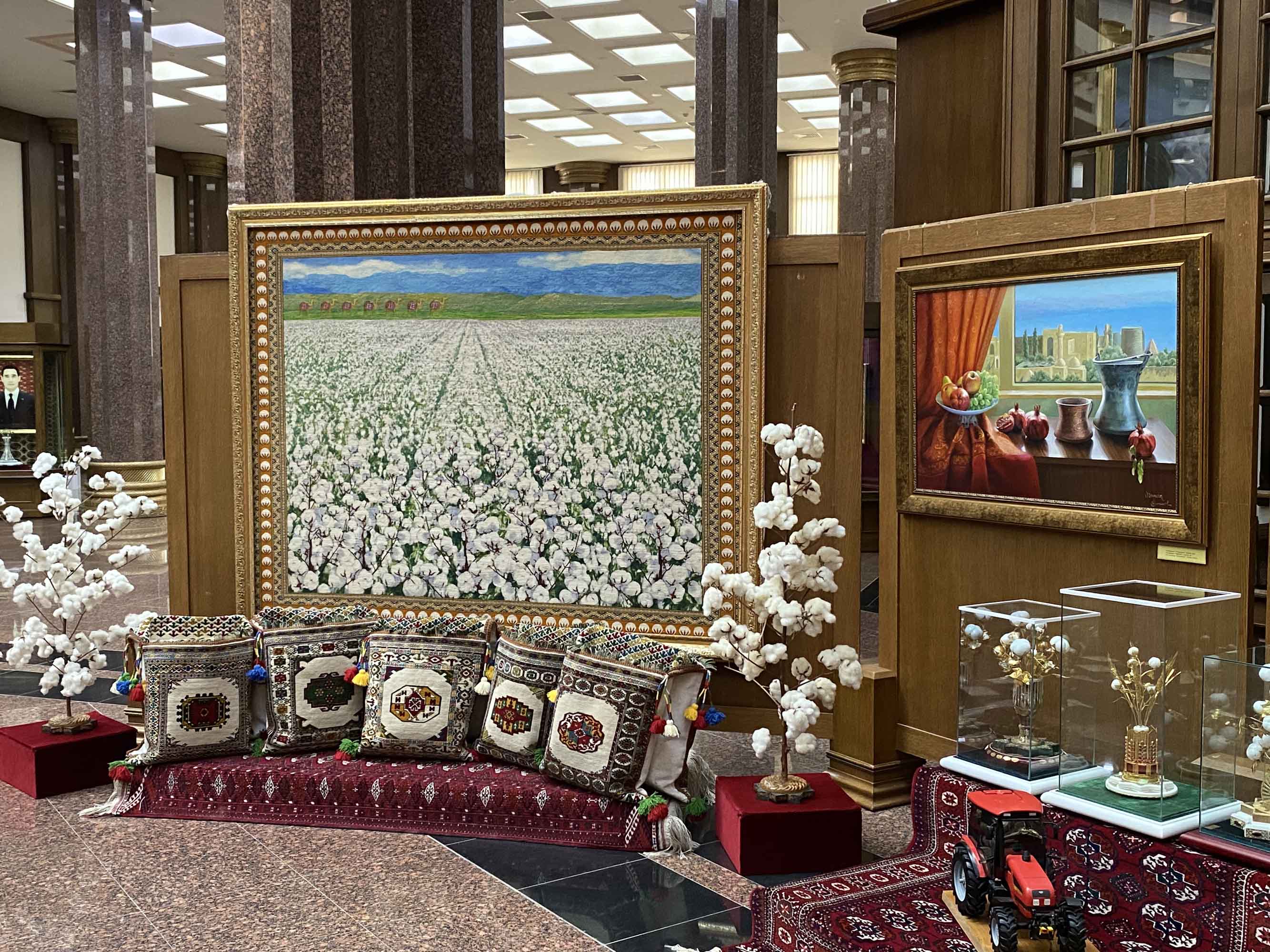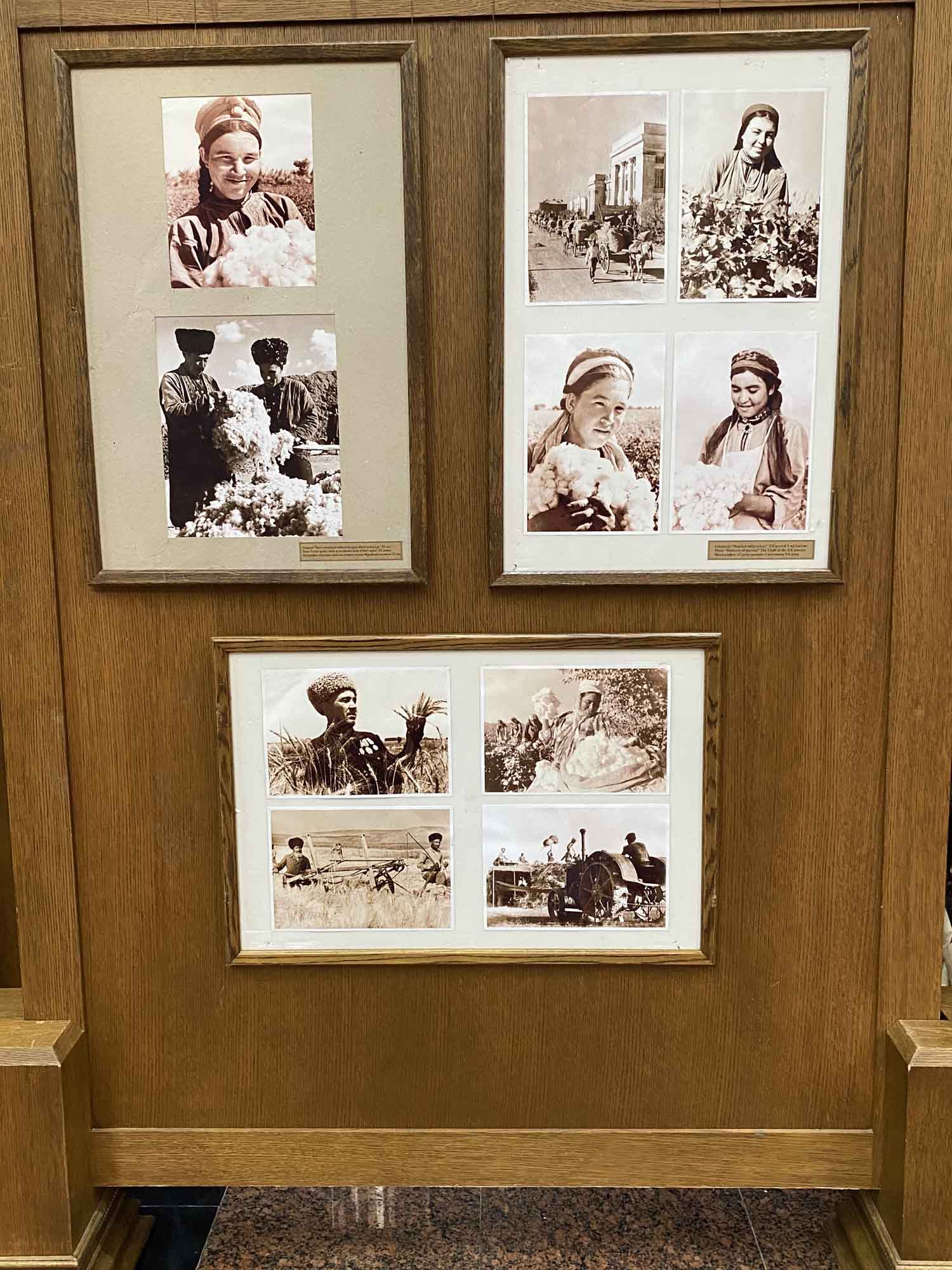 Further there are shown exhibits, from which has begun the history of development of agriculture in Turkmenistan in 30-s and 40-s of the 20th century. In photos of those years are visible the cotton field, women cotton-pickers, the first tractor, the excited moment of harvesting, selfless labour of rural workers. The Turkmen yurta representing ancient articles of everyday life of the Turkmen people became an adornment of the exhibition.