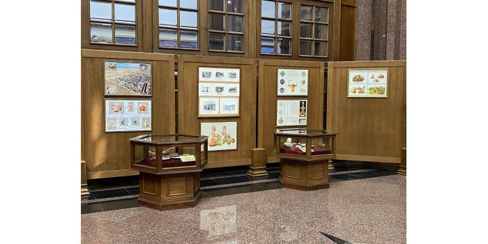 The first section of the exhibition is devoted to the history of occurrence and development of agriculture in Turkmenistan. Discovery of first signs of settled agriculture in the Central Asia in the northwest of Ashgabat city in ancient settlement of Jeytun, is the important historical event. The artefacts found on ancient agricultural settlements, such as hulling mills, a mortar with pestle, sickles, woman’s figurines as symbols of fertility and object of worship of farmers is possible to see in showcases of the exposition. As the result of excavation under the guidance of American scientific R.Pampelly in 1904 on hills of Аnau have been found the grains of white wheat relating to the fourth millenium B.C. For this reason the Turkmen land is considered to be the Motherland of white wheat. In the showcases is possible to see a valuable exhibit - prints of grains of white wheat on gypsum.