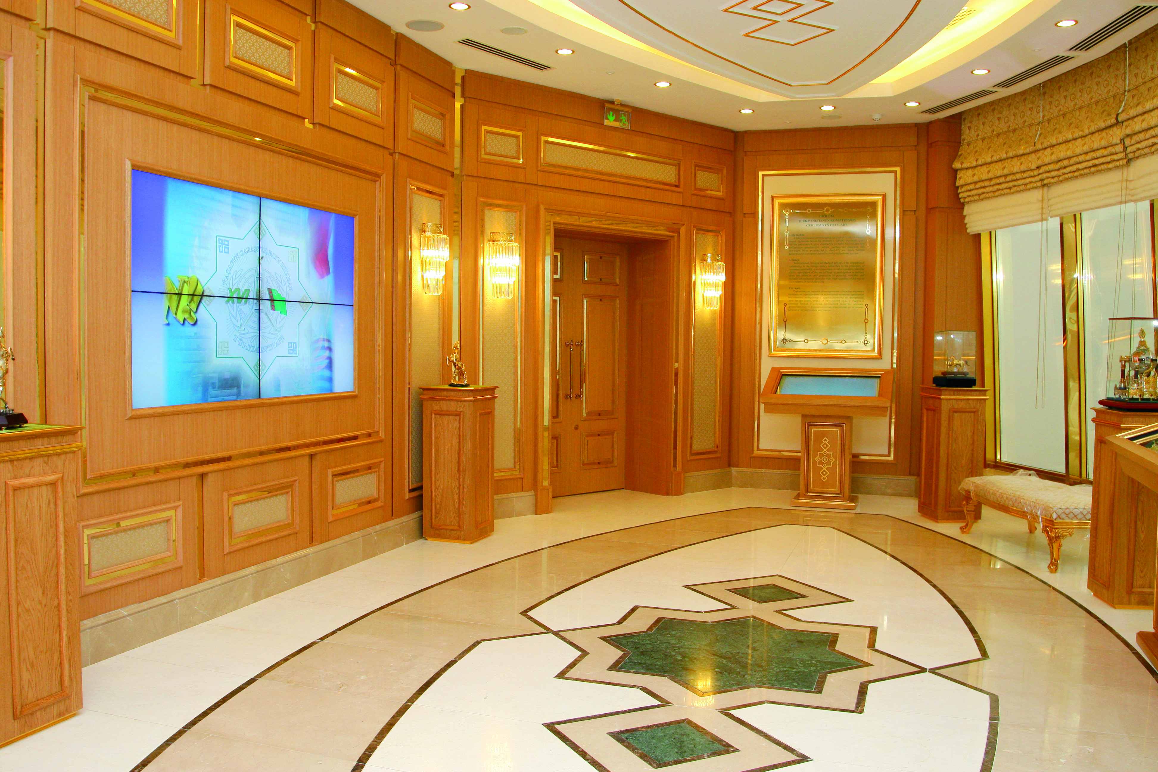 Залы музея оснащены интерактивными жидкокристаллическими (LED) экранами. В них заложена информация о самом здании и экспозиции на трех языках туркменском, английском и русском.