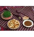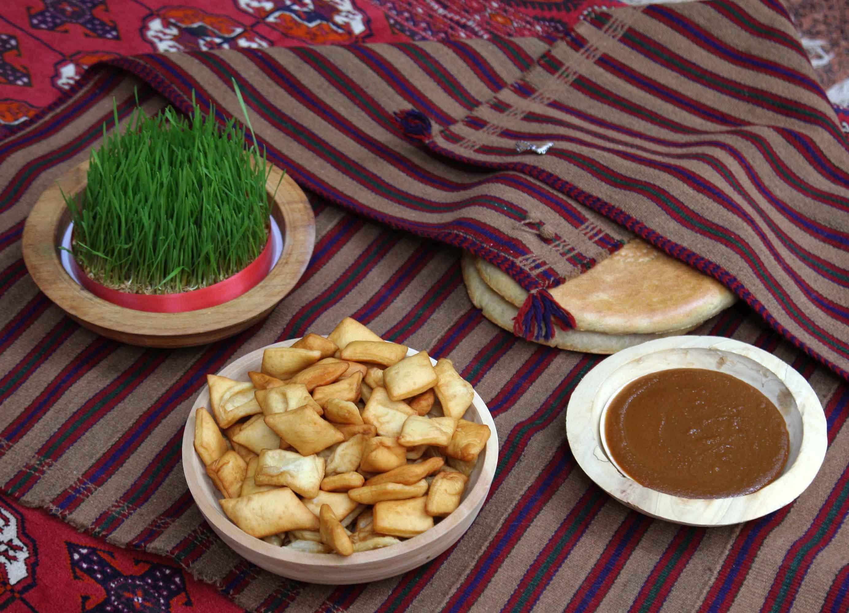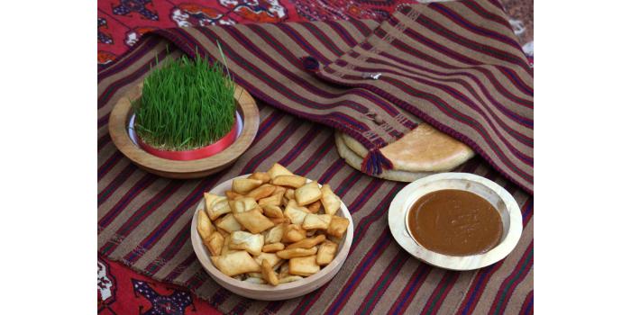 У туркменского народа есть несколько традиций, связанных с праздником Новруз. Согласно ей, готовят национальное угощение семени. Приготовленные яства раздаются друзьям и соседям. Bсе желают друг другу добра и удачи в новом году.