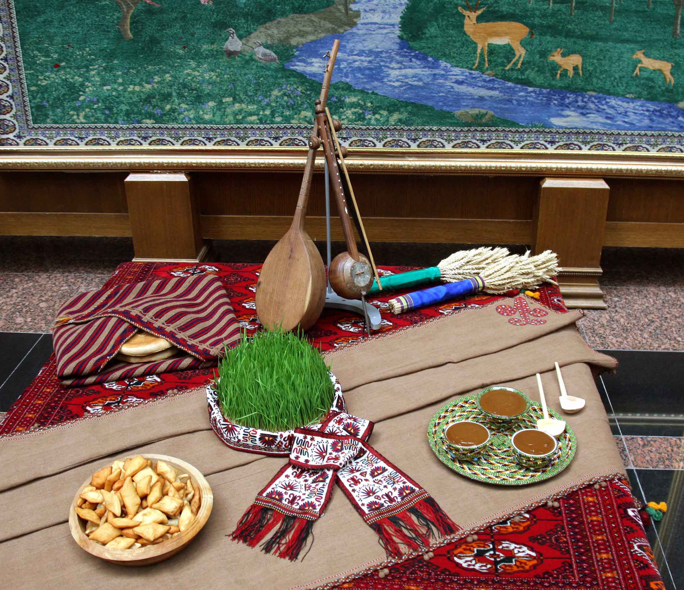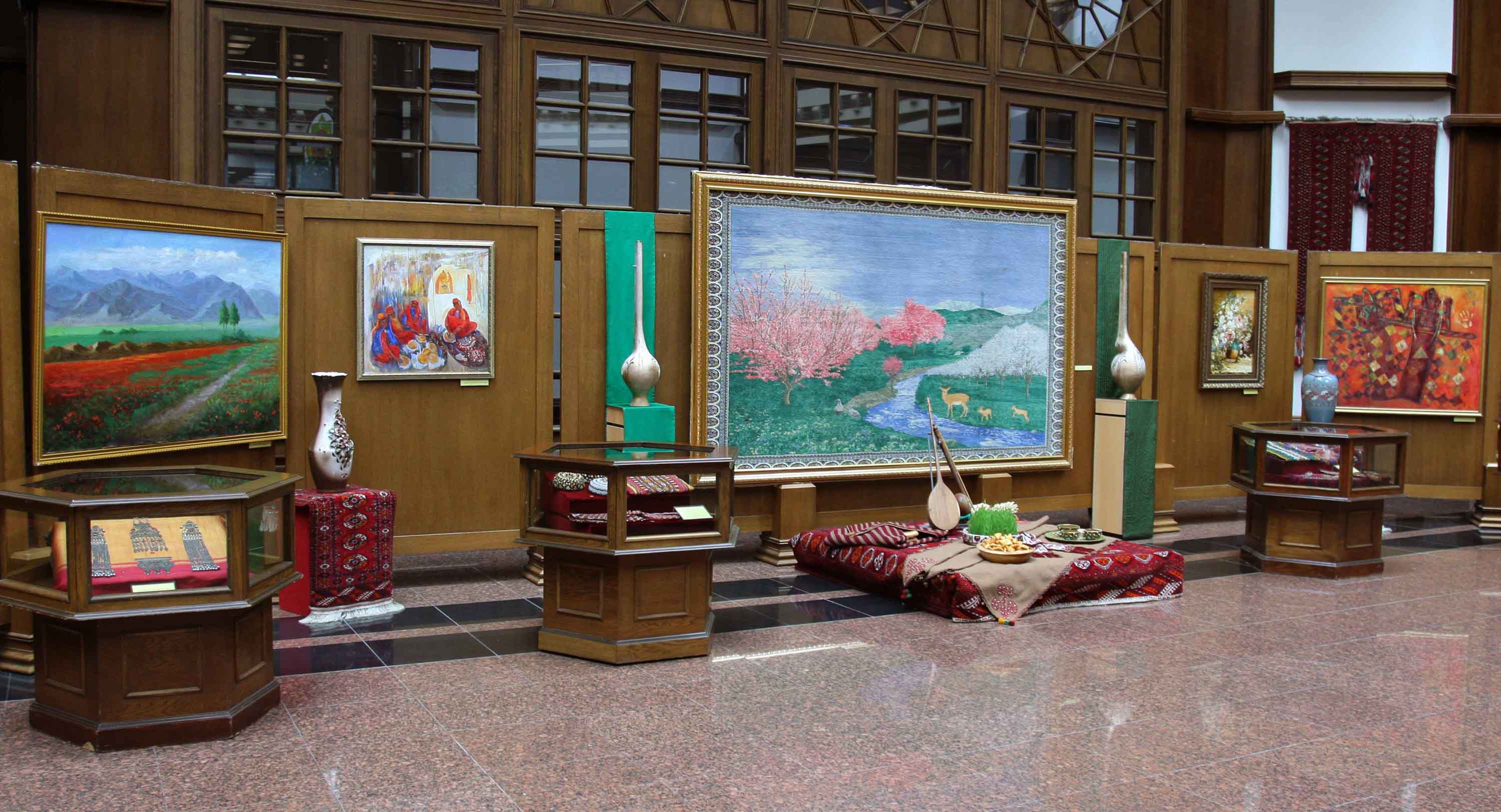 В эру Возрождения новой эпохи могущественного государства в Государственном музее Государственного культурного центра Туркменистана по случаю Международного праздника Новруз была организована праздничная выставка под названием «Когда придет Новруз». На выставке представлены бережно хранящиеся в архивах Государственного музея ковры-панно, изображающие прекрасную весну туркменской природы, картины наших мастеров, такие как «Белые розы» А.Джиджилова, «Волшебные узоры» И.Гылыджова, «Народное творчество» Ш.Акмухаммедова, «Национальные ценности» Г.Язмухаммедовой, «Национальные украшения» Г.Байрамова, «Цветущие гранаты» Н.Бегназарова, «Танец» Г.Гусейнова. Кроме того, на выставке представлены ковровые изделия и национальные костюмы, созданные нашими талантливыми женщинами. Особое место в экспозиции занимает «Белая юрта», представляющая национальный колорит туркменского народа, где можно увидеть композицию, изображающую туркменских женщин, перемалывающих муку в ручной мельнице и готовящих семени – главное национальное блюдо Новруза. В экспозиции также представлены ювелирные и керамические изделия.