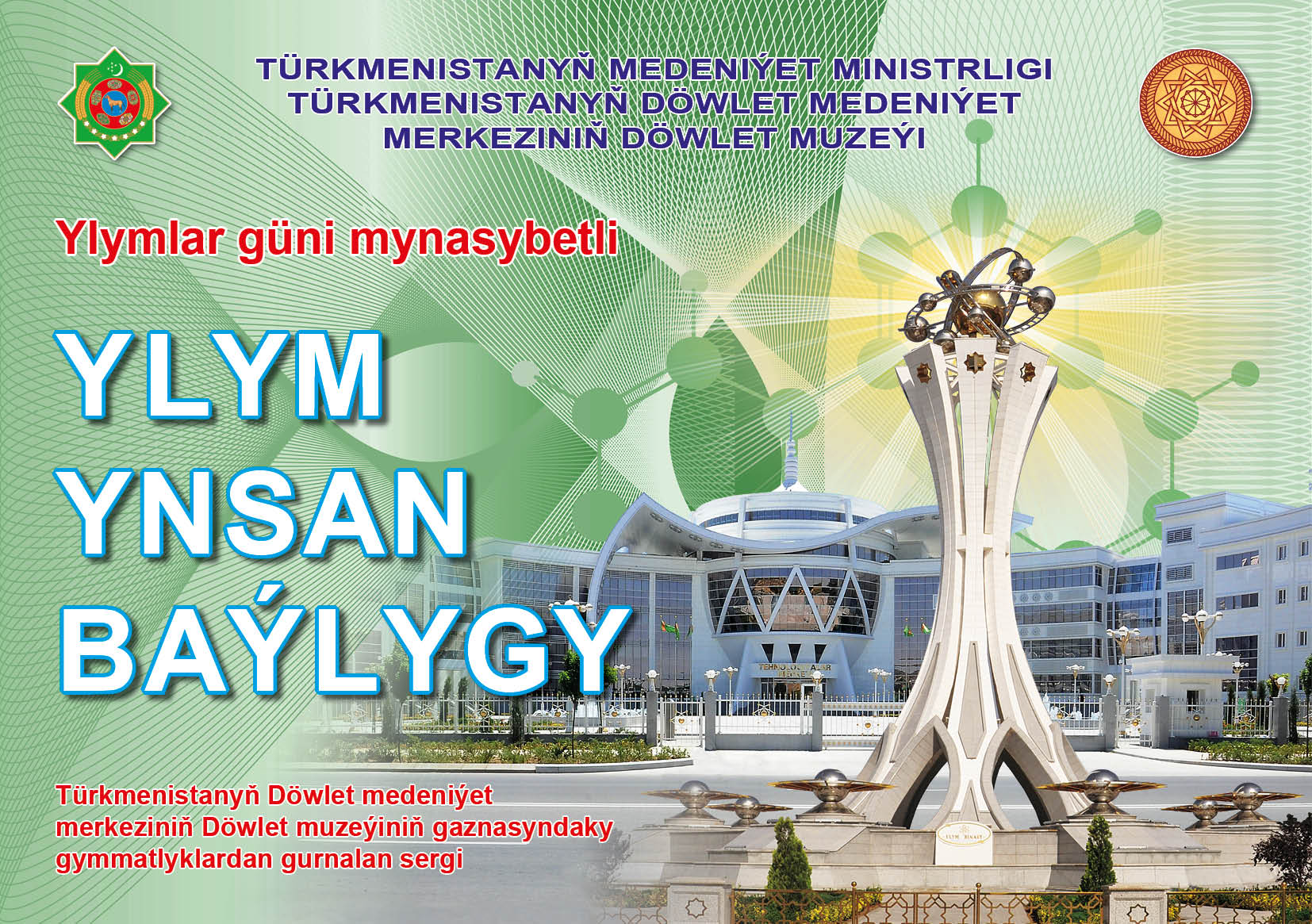 Türkmenistanyň Döwlet medeniýet merkeziniň Döwlet muzeýinde Ylymlar güni mynasybetli geçirilýän «Ylym ynsan baýlygy» atly serginiň açylyş dabarasyna gatnaşmak isleýänleriň ählisini 2021-nji ýylyň 4-nji iýunynda sagat 15:00-da myhmançylyga çagyrýar.