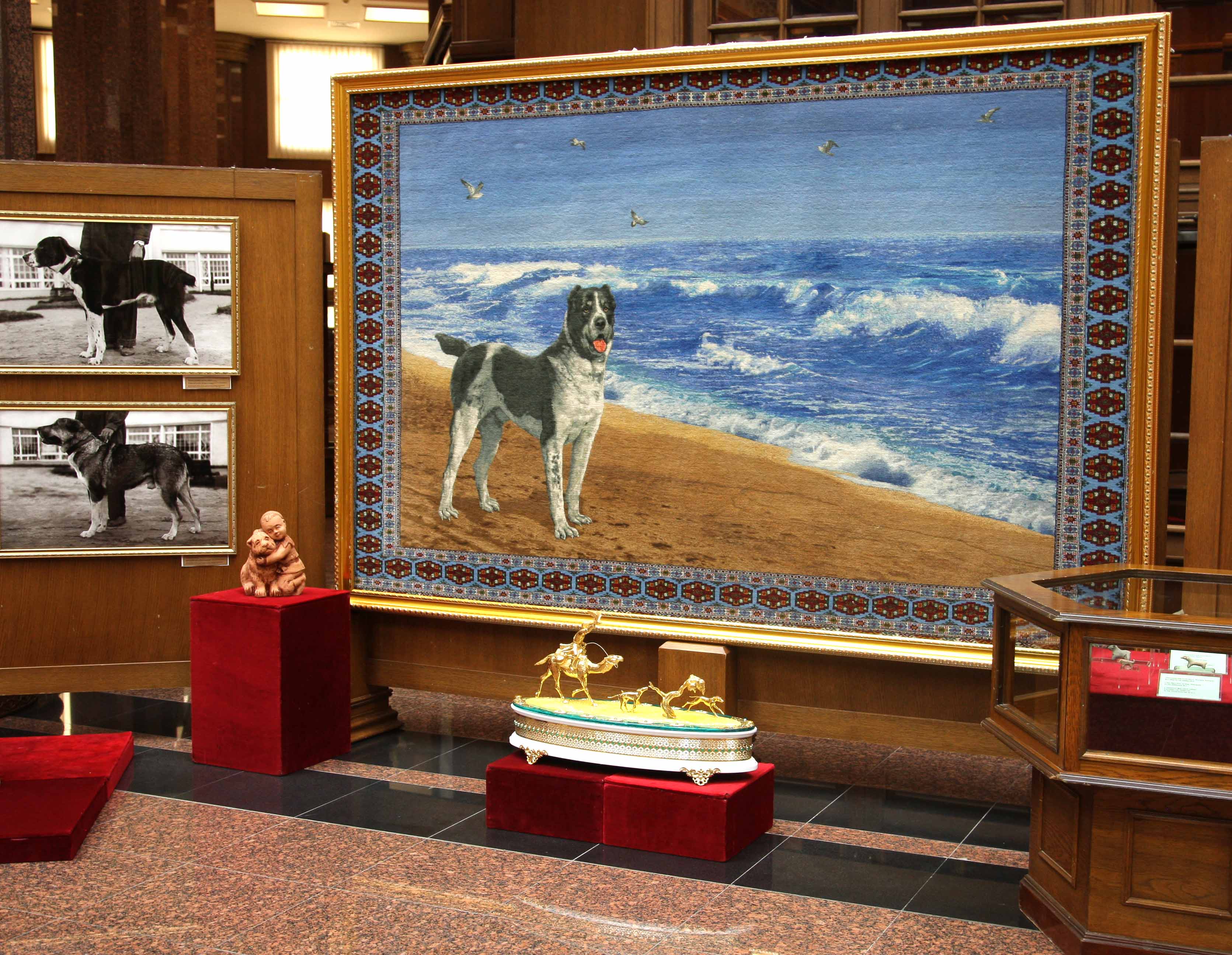 Türkmen alabaýynyň milli baýramy mynasybetli Türkmenistanyň Döwlet medeniýet merkeziniň Döwlet muzeýinde 2022-nji ýylyň 21-nji oktýabrynda «Türkmen alabaýy – edermenligiň we wepalylygyň nusgasy» atly sergi hem ýokary derejede guraldy. Sergide türkmen alabaýynyň keşbi suratlandyrylan haly pannolara aýratyn orun berilýär. Halylarda häzirki wagtda haly gölleri bilen bilelikde türkmen alabaýynyň keşbiniň sazlaşykly dokalmagy bu olaryň türkmen durmuşynda uly orun eýeleýänligini alamatlandyrýar. Şeýle-de sergide muzeýiň arheologiýa gaznasynda saklanýan toýundan ýasalan itiň heýkeljikleri, ýazuw çeşmeleri gaznasynda saklanylýan gadymy fotosuratlar, maddy-medeniýet we sowgatlyklar gaznalarynda saklanylýan alabaý bilen bagly zergärçilik eserleri hem-de heýkeller sergilendi.